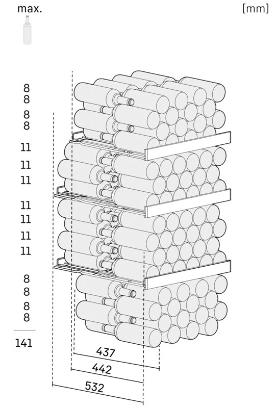 | Вес (без упаковки)52 кг | Вес(С упаковкой)57 кг | Вместимость141 бут. |