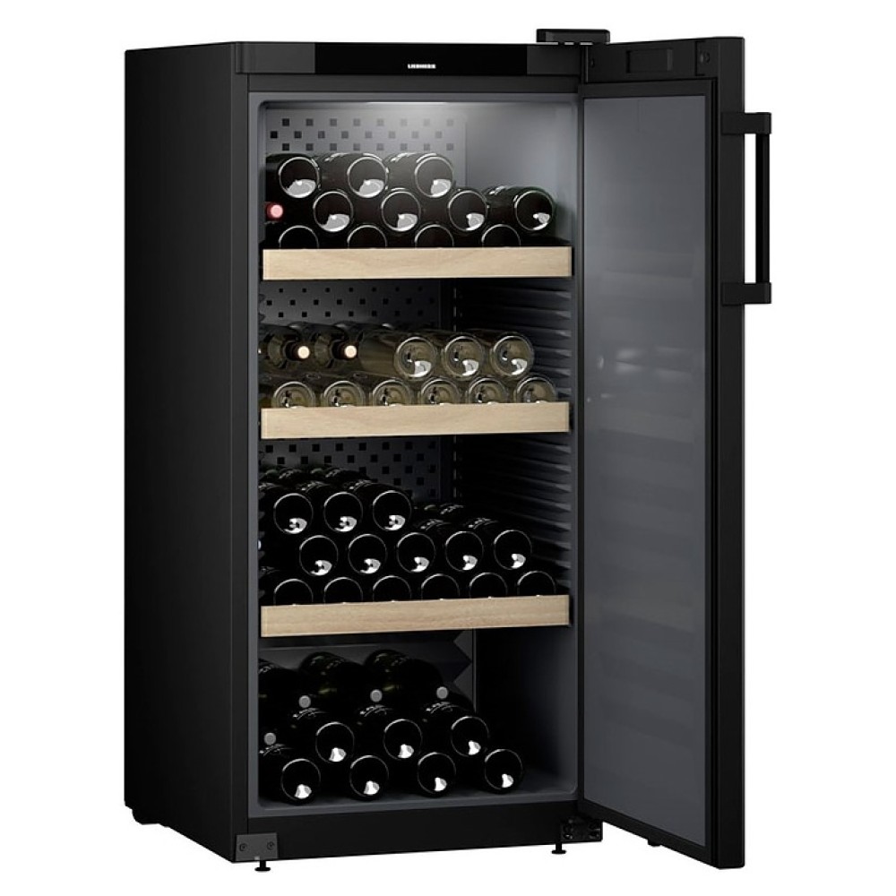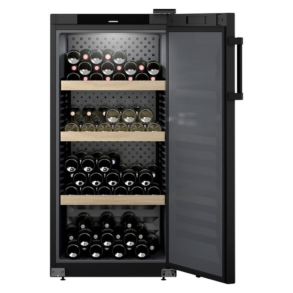 Винный шкаф Liebherr WSbl 4201 серии Pure предназначен для охлаждения и длительного хранения разливного вина в частных домах, квартирах, отелях и офисах. Модель оснащена сенсорной панелью управления, 4 полками и LED освещением. Боковые и задняя стенки выполнены из стали, дверь - из металла и пластика, ручка - из пластика, полки - из дерева.
