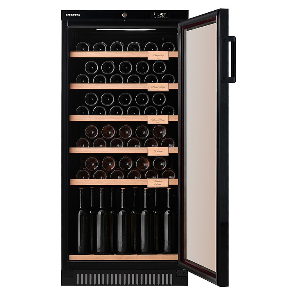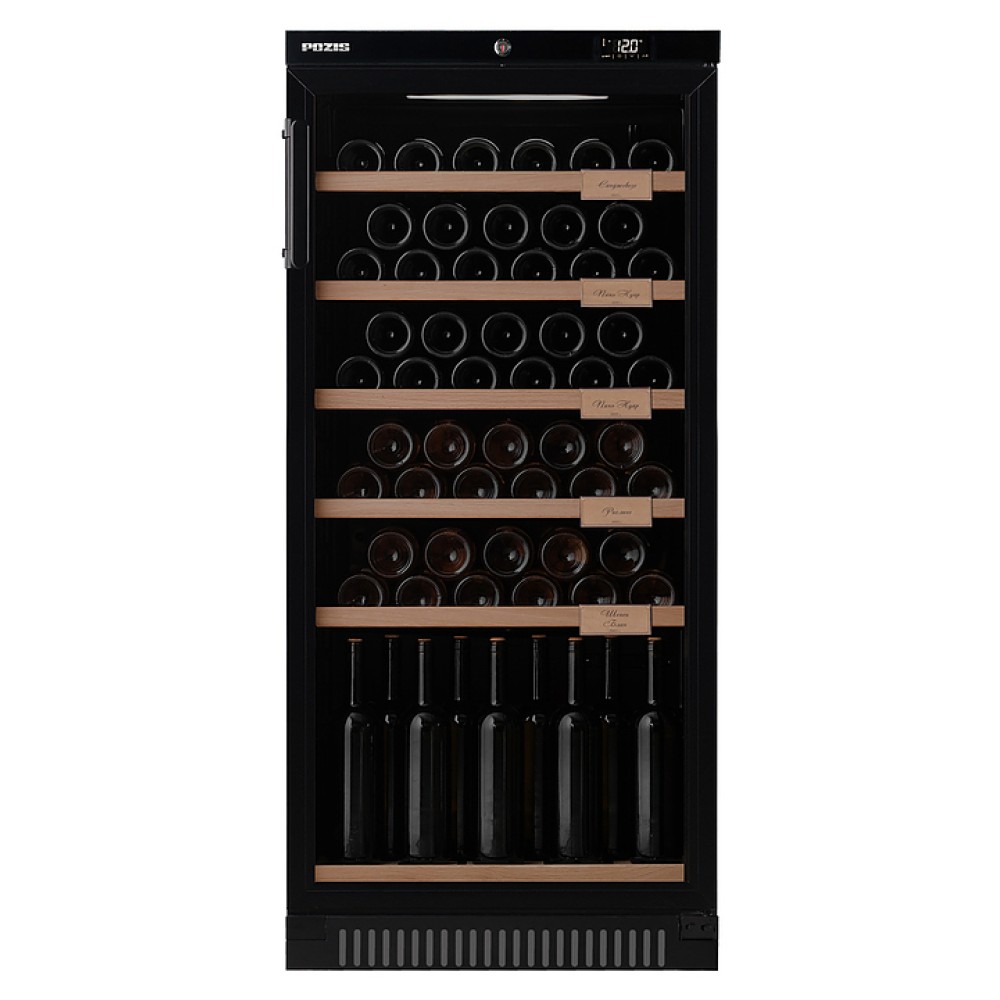 Винный шкаф POZIS ШВ-52 создает особые условия для хранения вин, сохраняя их первозданный вид, вкус и аромат. Тонированный стеклопакет на двери предотвращает проникновение солнечных лучей, ухудшающих качество вина, особая циркуляция воздуха поддерживает нужный уровень влажности, а деревянные полки снижают уровень вибрации от компрессора. Для удобства пользования цифровой дисплей, отображающий температуру, располагается над дверью в зоне постоянной видимости.