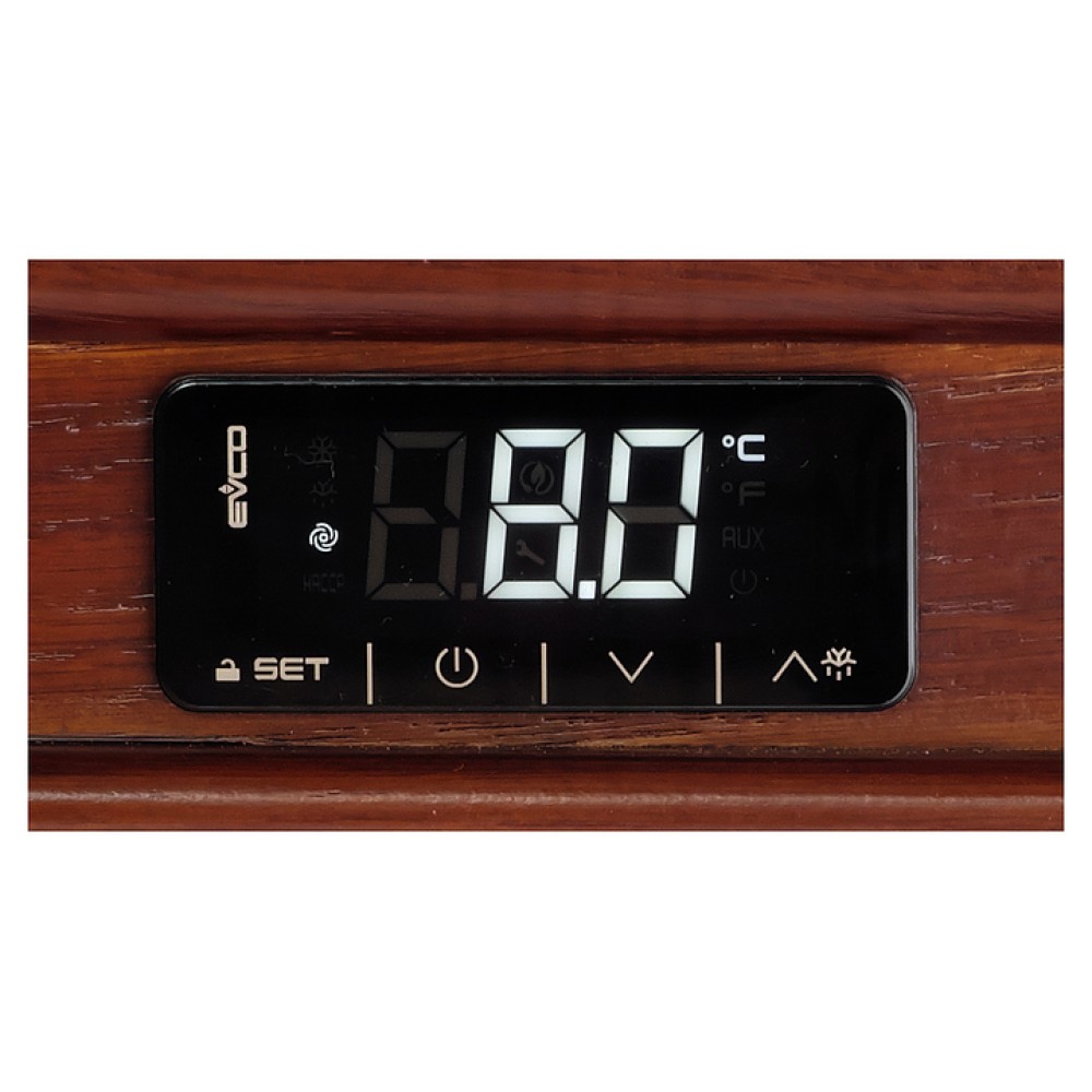 Винный шкаф POZIS ШВД-78 создает особые условия для хранения вин, сохраняя их первозданный вид, вкус и аромат. Тонированный стеклопакет на двери предотвращает проникновение солнечных лучей, ухудшающих качество вина, особая циркуляция воздуха поддерживает нужный уровень влажности, а деревянные полки снижают уровень вибрации от компрессора. Для удобства пользования цифровой панелью дисплей, отображающий температуру, располагается над дверью в зоне постоянной видимости.