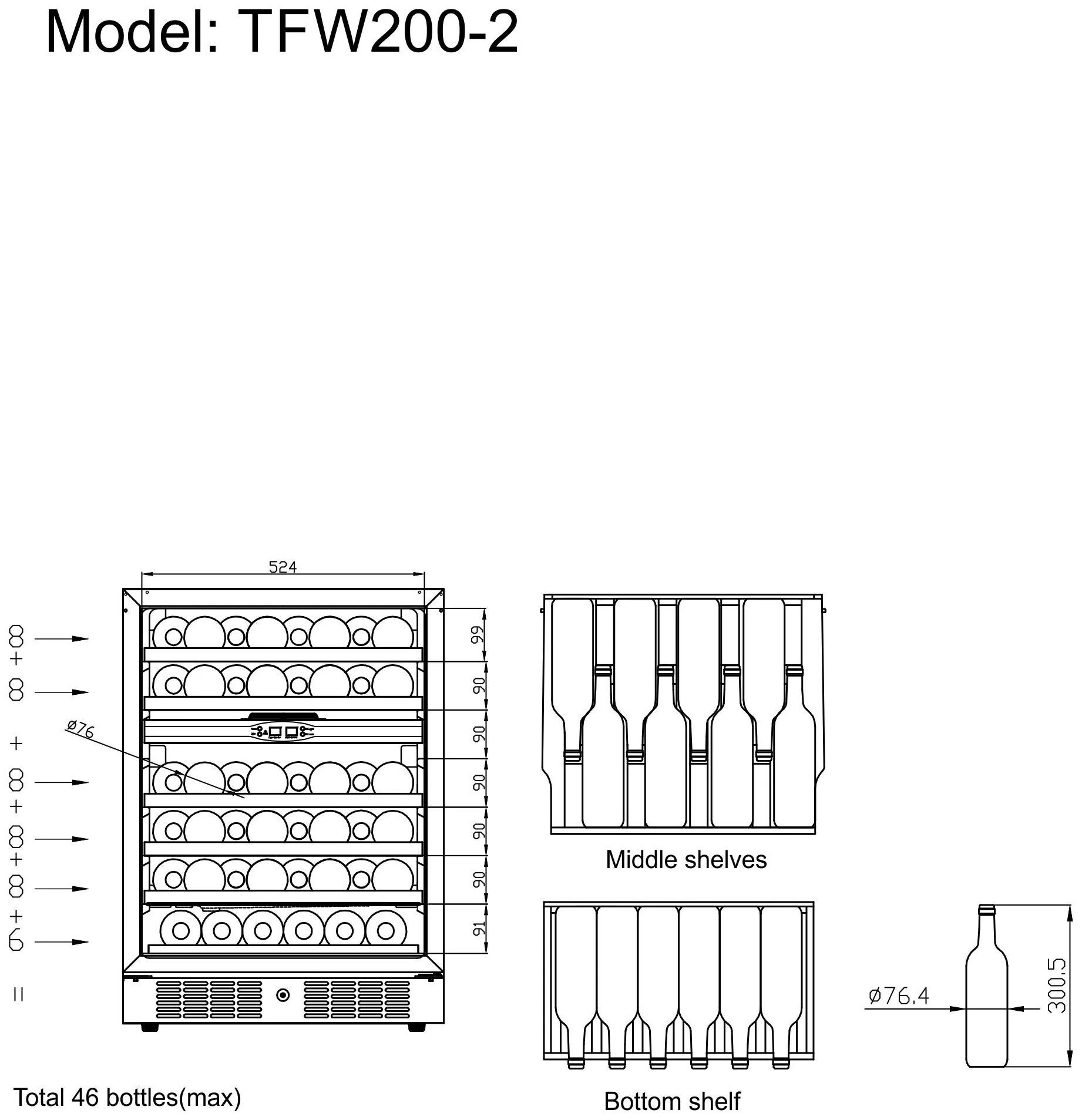| Вес (без упаковки)44 кг | Вес(С упаковкой)49 кг | Вместимость46 бут. |