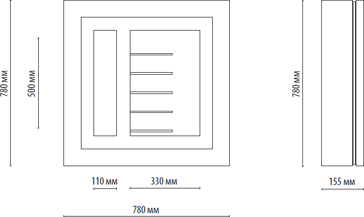 | Высота780 мм | Глубина155 мм | Ширина780 мм |