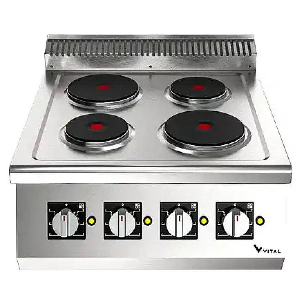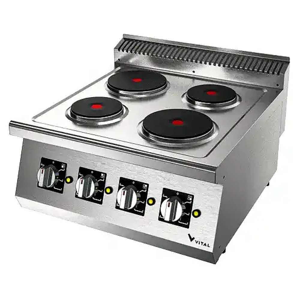 Электрическая плита VITAL EKO6020 серии 600 предназначена для приготовления различных блюд из мяса, птицы, рыбы и овощей в наплитной посуде на предприятиях общественного питания и торговли. Модель оснащена 4 круглыми конфорками, прессованным монолитным верхним столом и 6-ступенчатыми тепловыми переключателями. Закругленные края столешницы обеспечивают легкую чистку. Корпус выполнен из нержавеющей стали.