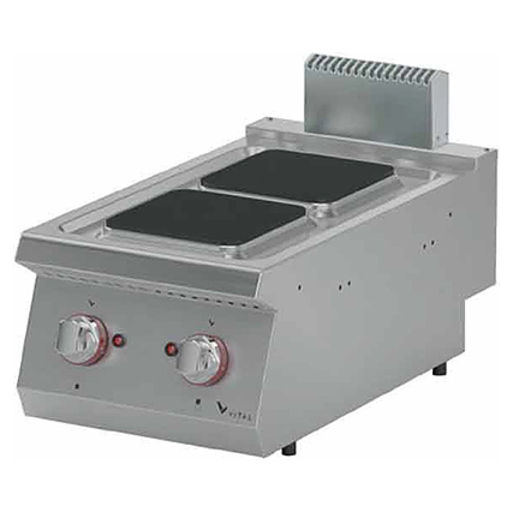 Электрическая плита VITAL EKO7010K серии 700 предназначена для приготовления различных блюд из мяса, птицы, рыбы и овощей в наплитной посуде на предприятиях общественного питания и торговли. Модель оснащена 2 квадратными конфорками, прессованной монолитной столешницей и 6-ступенчатыми тепловыми переключателями. Закругленные края столешницы обеспечивают легкую чистку. Корпус выполнен из нержавеющей стали.