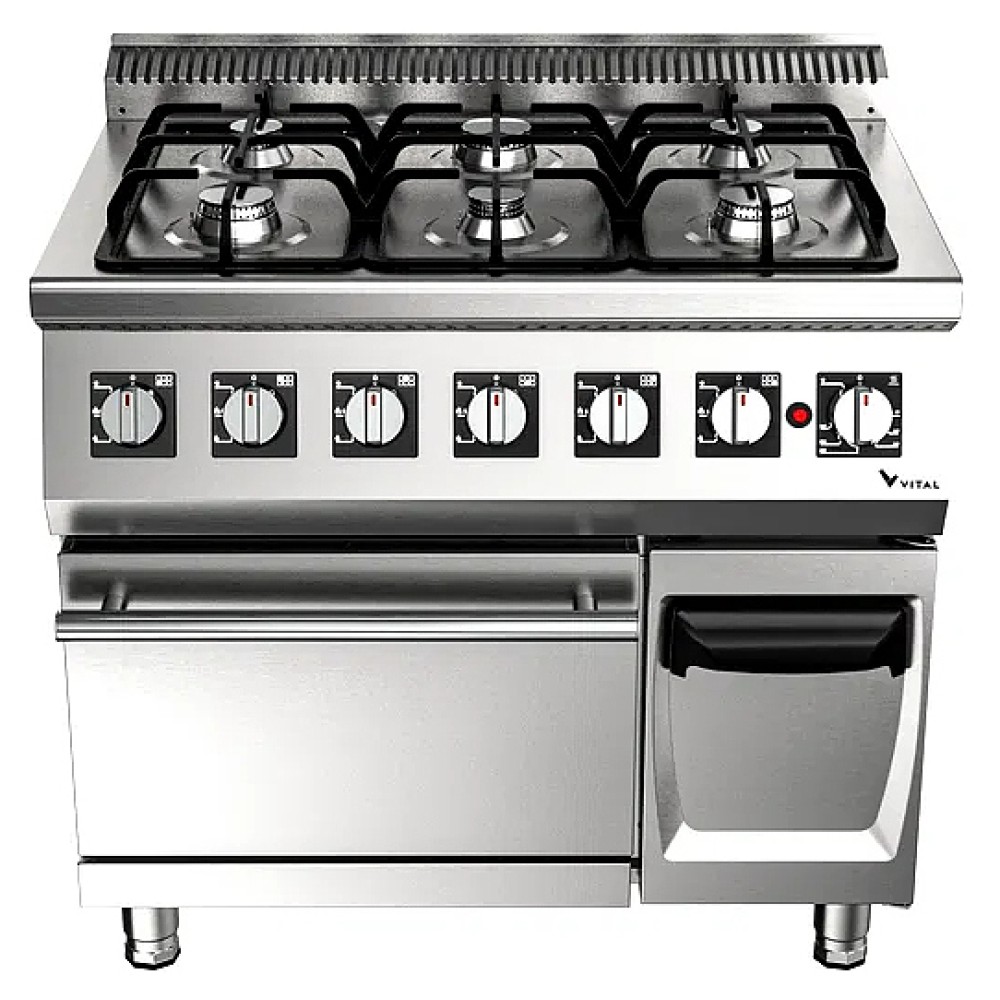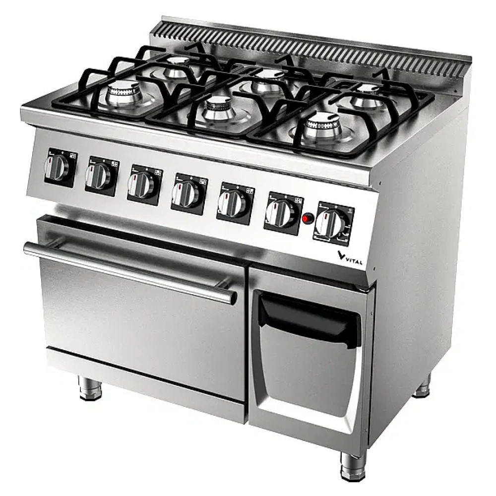 Газовая плита VITAL GKF6030 серии 600 предназначена для приготовления различных блюд из мяса, птицы, рыбы и овощей в наплитной посуде на предприятиях общественного питания и торговли. Модель оснащена 6 горелками, духовкой, устройством газовой безопасности и термопарой. Закругленные края плиты обеспечивают легкую чистку. Корпус выполнен из нержавеющей стали, съемная решетка и нижнее основание духовки - из чугуна.