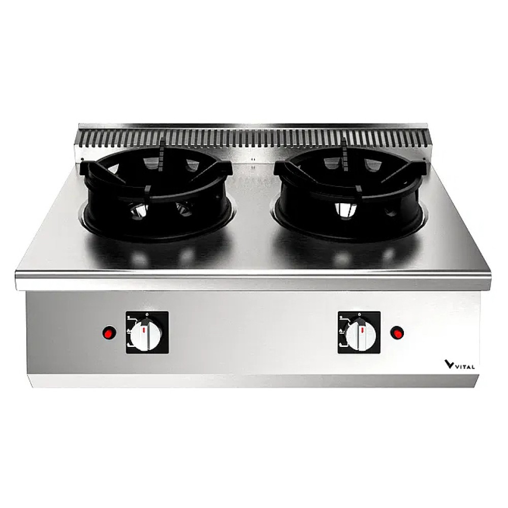 Газовая плита вок VITAL GKW6030 серии 600 предназначена для приготовления различных блюд из мяса, птицы, рыбы и овощей в наплитной посуде на предприятиях общественного питания и торговли. Модель оснащена 2 горелками, устройством газовой безопасности и термопарой. Закругленные края плиты обеспечивают легкую чистку. Корпус выполнен из нержавеющей стали, съемная решетка - из чугуна.