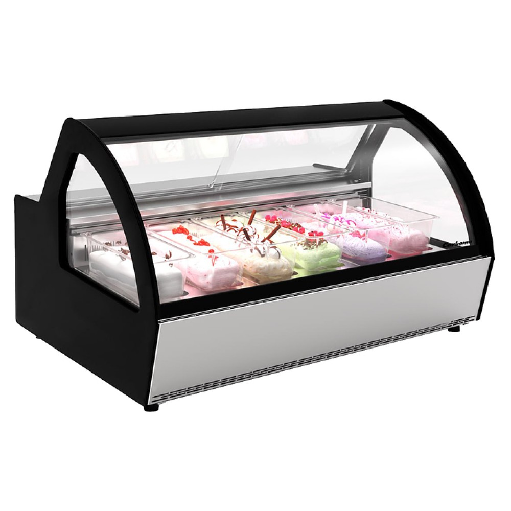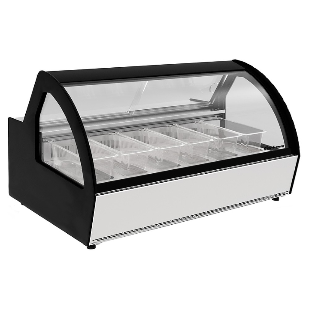Витрина для мороженого Carboma JOY 2 I83 VL 1,2-1 используется на предприятиях общественного питания и торговли для охлаждения, хранения и демонстрации мягкого и других видов мороженого. Модель оснащена электронным блоком управления, изогнутым фронтальным и 2 боковыми стеклопакетами высокой степени прозрачности и рабочей поверхностью-столешницей. Экспозиционные поддоны выполнены из нержавеющей стали, термоизоляция – из пенополиуретана, гастроемкости – из прозрачного поликарбоната.