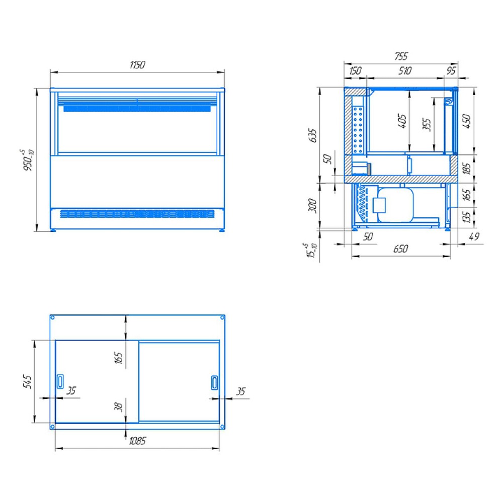 | Высота950 мм | Глубина750 мм | Ширина1150 мм |