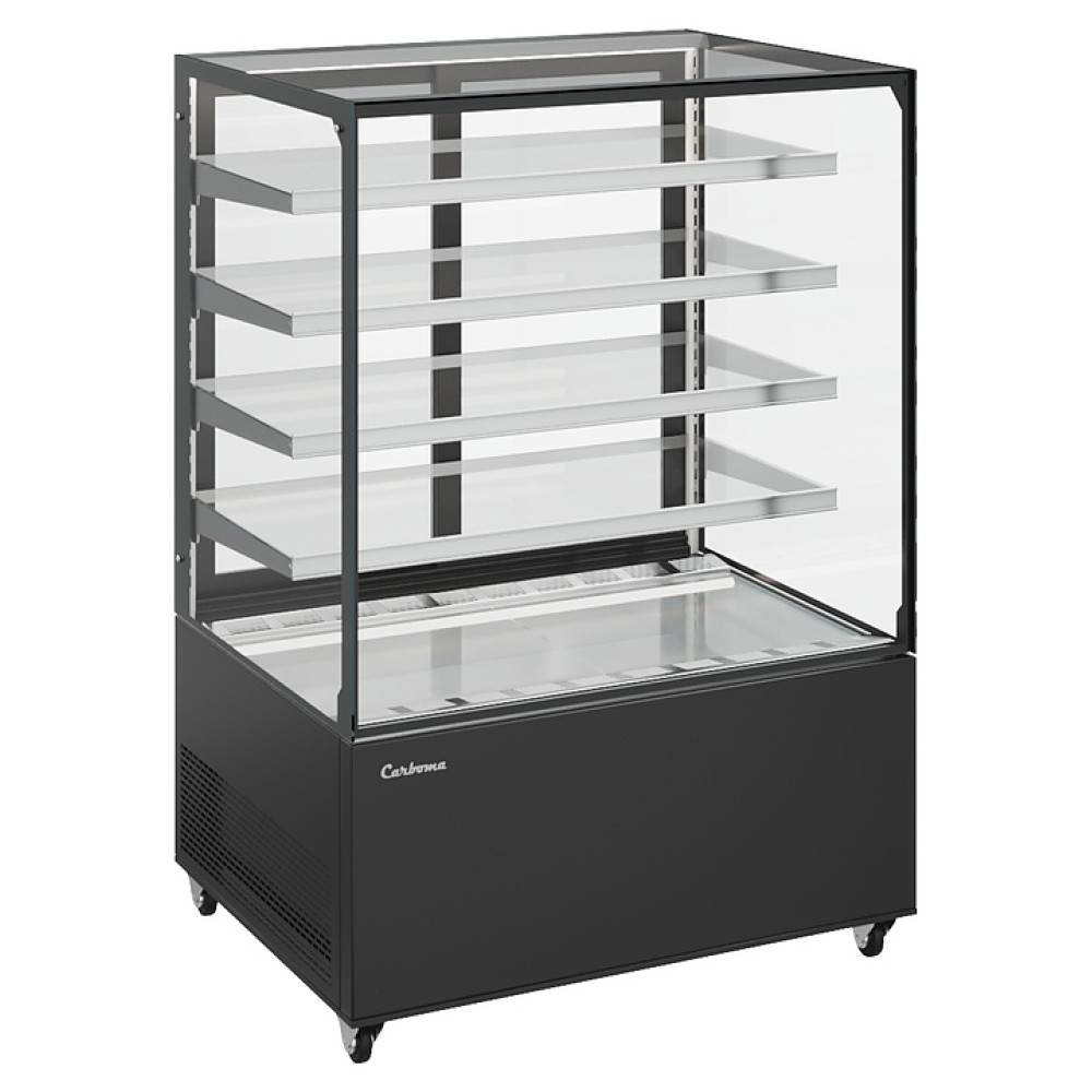 Закрытая кондитерская витрина Carboma КС71-150 VV 1,2-1 COSMO используется на предприятиях общественного питания и торговли для демонстрации, охлаждения и кратковременного хранения напитков, тортов, пирожных и других кондитерских изделий и гастрономических товаров. Модель оснащена 4-х сторонним остеклением, 4 регулируемыми по уровню стеклянными полками со встроенными ценникодержателями и регулируемыми ножками высотой от 30 до 50 мм. Корпус выполнен из стали и пластика, термоизоляция корпуса - из пенополиуретана.