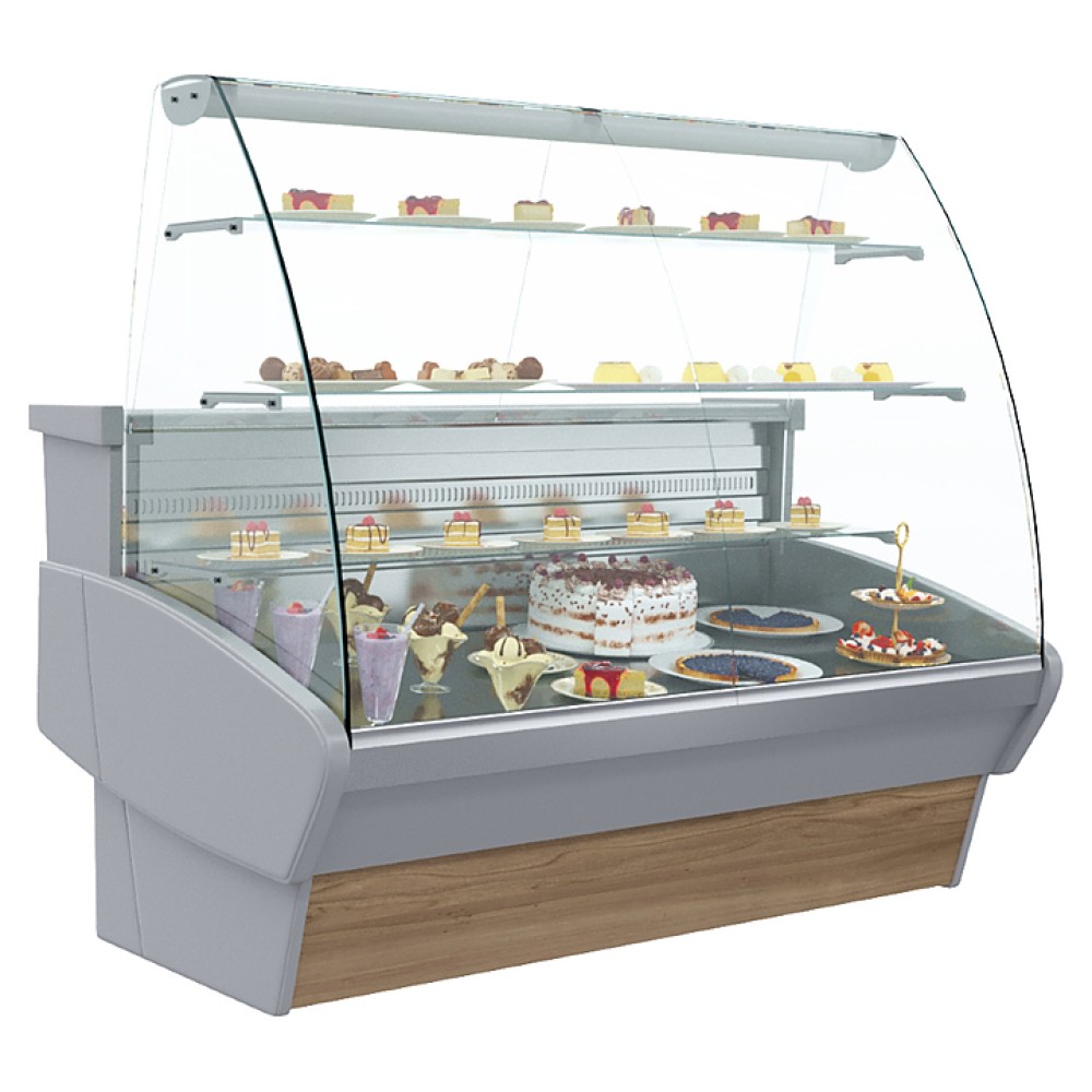 Кондитерская витрина Carboma K95 SM 1,2-1 (ВХСд-1,2 (Паттерн)) используется на предприятиях общественного питания и торговли для демонстрации, охлаждения и кратковременного хранения тортов, пирожных и других кондитерских изделий. Модель оснащена гнутым передним стеклом, 3 полками, выдвижными поддонами и регулируемыми ножками высотой от 20 до 35 м. Корпус выполнен из стали с ППУ-изоляцией, зона выкладки и столешница - из нержавеющей стали, раздвижные задние створки - из оргстекла, нижняя панель - из стали, декорированной под ольху.