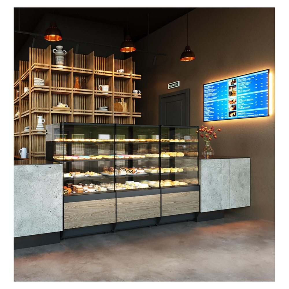 Кондитерская витрина Carboma KC70 VM 0,9-1 Light версия 2.0 используется на предприятиях общественного питания и торговли для демонстрации, охлаждения и кратковременного хранения тортов, пирожных и других кондитерских изделий. Модель оснащена прямыми фронтальным и боковыми стеклами без металлических рамок, обеспечивающими улучшенный обзор продукции, и задними створками-слайдерами со встроенной ручкой.