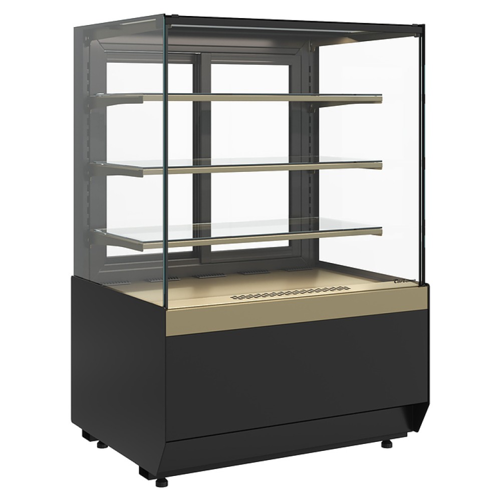 Открытая кондитерская витрина Carboma KC70 VM 1,3-2 Standard версия 2.0 используется на предприятиях общественного питания и торговли для демонстрации, охлаждения и кратковременного хранения тортов, пирожных и других кондитерских изделий. Отсутствие переднего стеклопакета позволяет использовать витрину в зоне самообслуживания. Модель оснащена боковыми прямыми стеклами без металлических рамок, обеспечивающими улучшенный обзор продукции, и задними створками-слайдерами со встроенной ручкой.