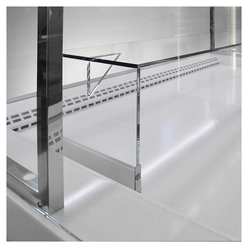 Напольная кондитерская витрина Finist Maria Msv-19-9 предназначена для кратковременного хранения и предпродажной демонстрации десертов и кондитерских изделий на предприятиях общественного питания и торговли. Модель оснащена охлаждаемой камерой-накопителем, выдвижной полкой, столешницей и подсветкой. Фасады выполнены из МДФ, купол - из просветленного стекла, двери-купе - из оргстекла, зона выкладки и столешница - из искусственного камня, который отличается прочностью, долговечностью, гигиеничностью, легко очищается и не впитывает запахи.