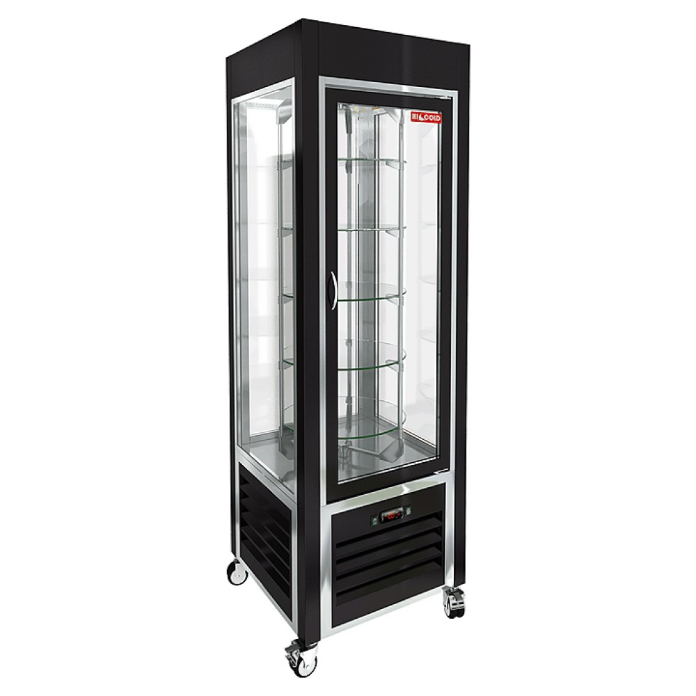 Кондитерская витрина HICOLD VRC 350 R Black FR используется на предприятиях общественного питания и торговли для демонстрации, охлаждения и кратковременного хранения кондитерских изделий и десертов. Модель оснащена 5 вращающимися полками и колесами со стопором. Корпус выполнен из окрашенной стали и однокамерного стеклопакета.