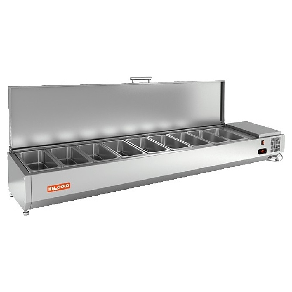 Настольная холодильная витрина HICOLD VRTU 1970 используется на предприятиях общественного питания и торговли для демонстрации, охлаждения и кратковременного хранения салатов, гарниров, закусок и других готовых блюд. Модель оснащена электронной панелью управления, крышкой и ножками. Изделие выполнено из нержавеющей стали.