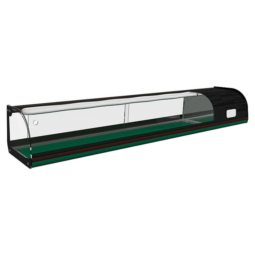 Холодильная витрина KAYMAN К-ВХ-1,8 предназначена для охлаждения, кратковременного хранения и демонстрации суши на предприятиях общественного питания и торговли. Модель оснащена холодильным агрегатом Electrolux. Оборудование работает на хладагенте R134a. Экспозиционная поверхность выполнена из шлифованной нержавеющей стали, ночные шторки - из оргстекла.