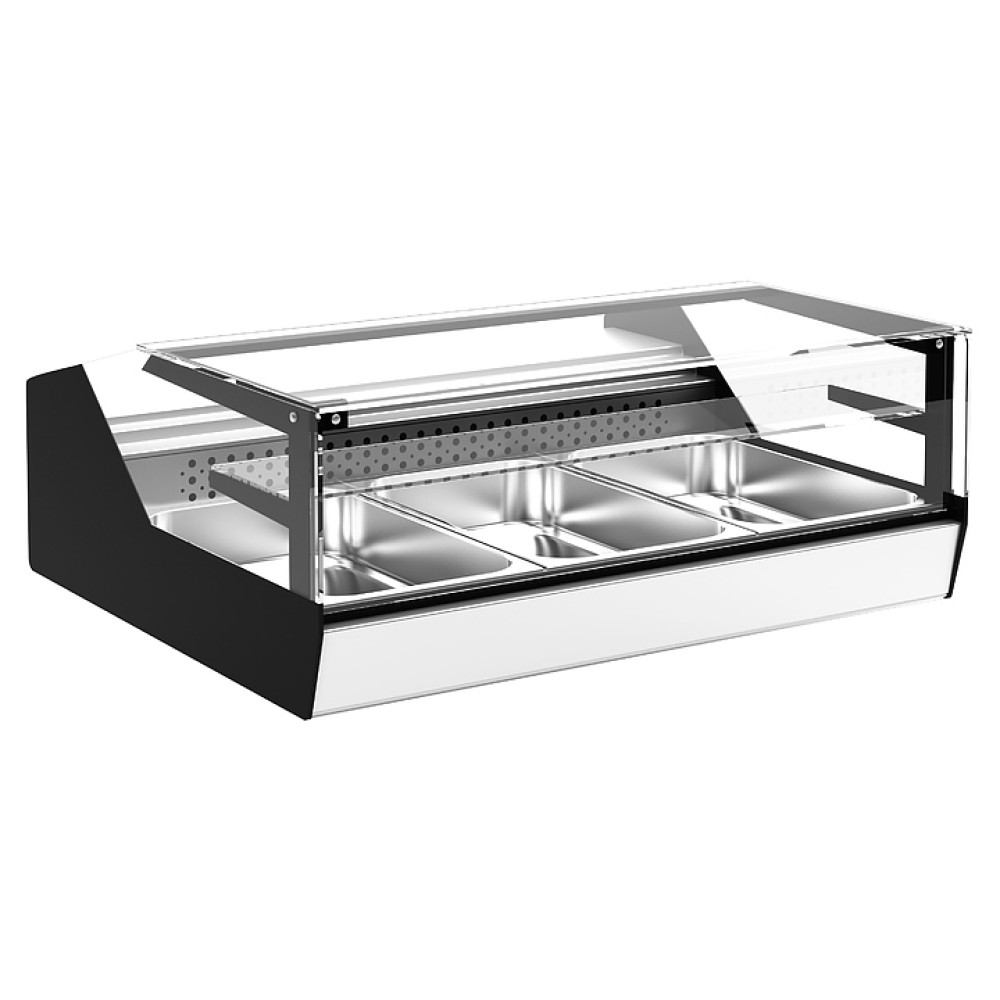 Настольная холодильная витрина KAYMAN ВСА-М1 предназначена для охлаждения, кратковременного хранения и демонстрации готовых блюд и полуфабрикатов на предприятиях общественного питания и торговли. Модель оснащена неохлаждаемой полкой, прямым передним стеклом, LED-подсветкой внутреннего объема и энергосберегающими ночными шторками. Корпус выполнен из стали с термоизоляцией из пенополиуретана, экспозиционная поверхность - из нержавеющей стали, полка - из стекла.