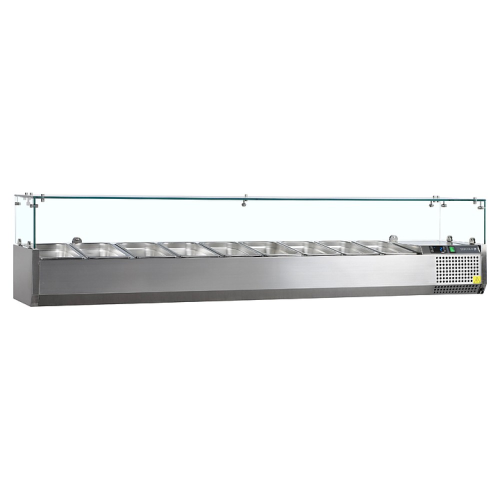 Холодильная витрина TEFCOLD VK38-200 предназначена для кратковременного хранения и демонстрации готовых салатов, мясных или рыбных закусок, а также ингредиентов для них на предприятиях общественного питания и торговли. Корпус и внутренняя обшивка выполнены из нержавеющей стали.