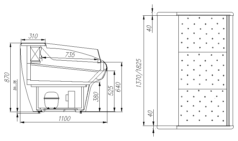 Холодильная витрина Carboma G110 SP 1,25-2 (ВХСл-1,25 G110) используется на предприятиях общественного питания и торговли для охлаждения, кратковременного хранения, демонстрации и продажи свежей рыбы. Модель оснащена регулируемыми ножками высотой от 20 до 35 мм. Нижний уровень и столешница выполнены из шлифованной нержавеющей стали, передняя панель - из крашеной стали, боковины - из серебристого пластика.
