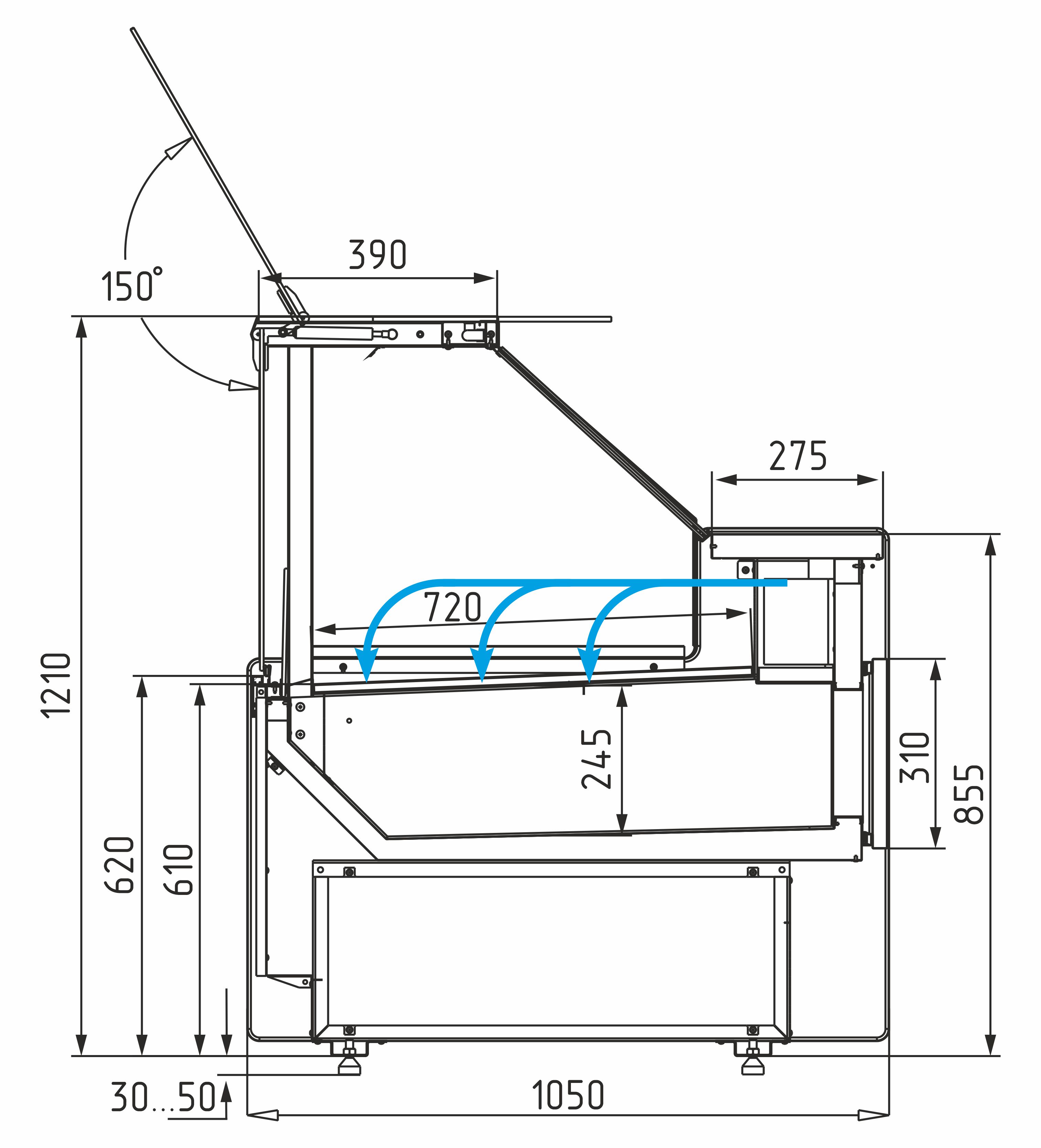 Отдельностоящие витрины приобретаются только вместе с боковинами. При заказе нескольких витрин с одинаковым температурным режимом для установки в линию достаточно заказать 2 боковины на всю линию.