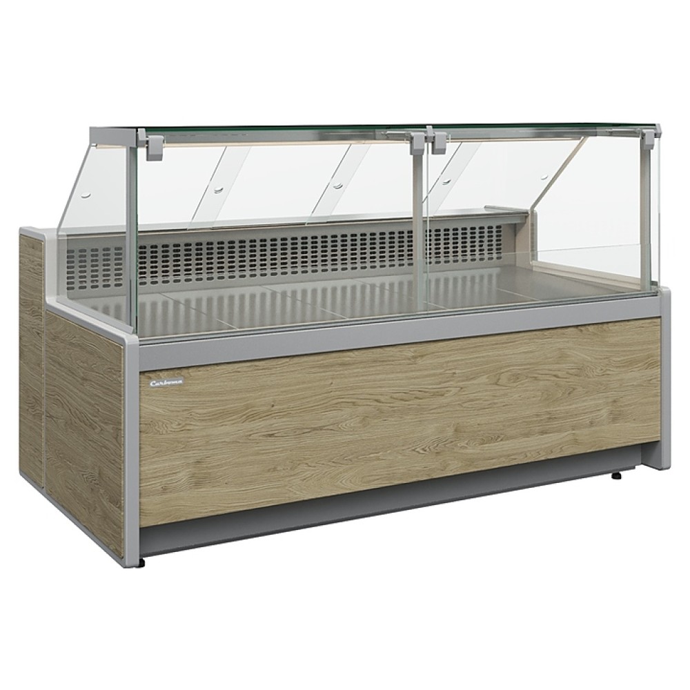 Холодильная витрина Carboma GC111 VM 3,75-1 1010 используется на предприятиях общественного питания и торговли для охлаждения, кратковременного хранения, демонстрации и продажи продуктов питания, салатов, молочных и других гастрономических изделий. Модель оснащена дополнительным накопителем и энергосберегающими шторками. Столешница и экспозиционная поверхность выполнены из шлифованной нержавеющей стали, передняя панель - из ламинированного МДФ.