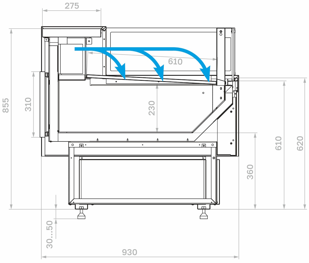 Модель без боковин предназначена для установки нескольких витрин в линию и не может использоваться как отдельностоящая. При заказе нескольких моделей для установки в линию достаточно приобрести две боковины для первой и последней витрины.