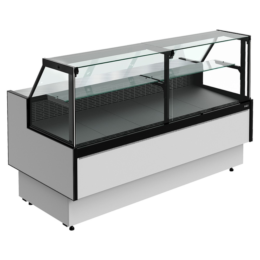Модель без боковин предназначена для установки нескольких витрин в линию и не может использоваться как отдельностоящая. При заказе нескольких моделей для установки в линию достаточно приобрести две боковины для первой и последней витрины.
