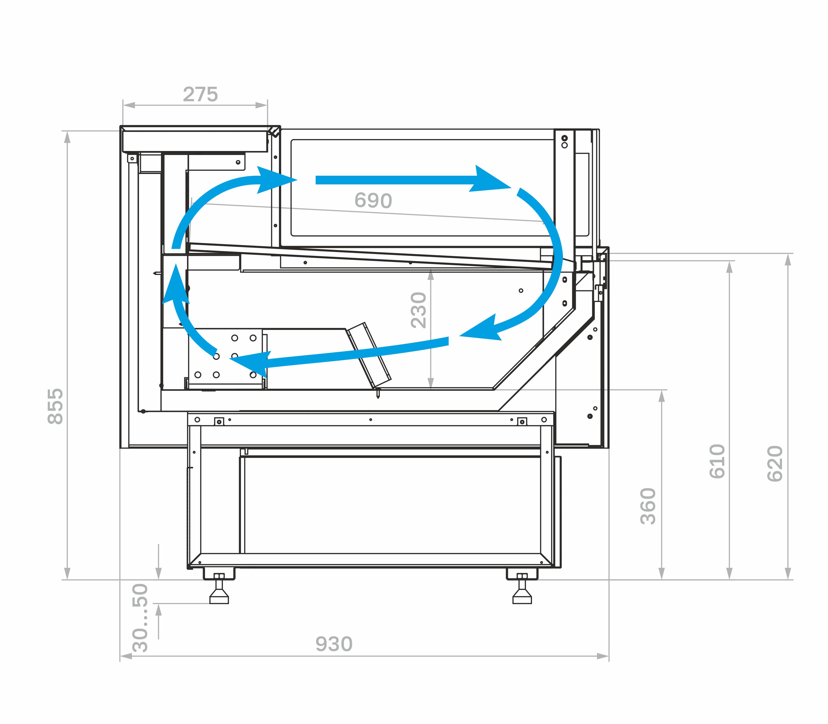 Модель без боковин предназначена для установки нескольких витрин в линию и не может использоваться как отдельностоящая. При заказе нескольких моделей для установки в линию достаточно приобрести две боковины для первой и последней витрины.