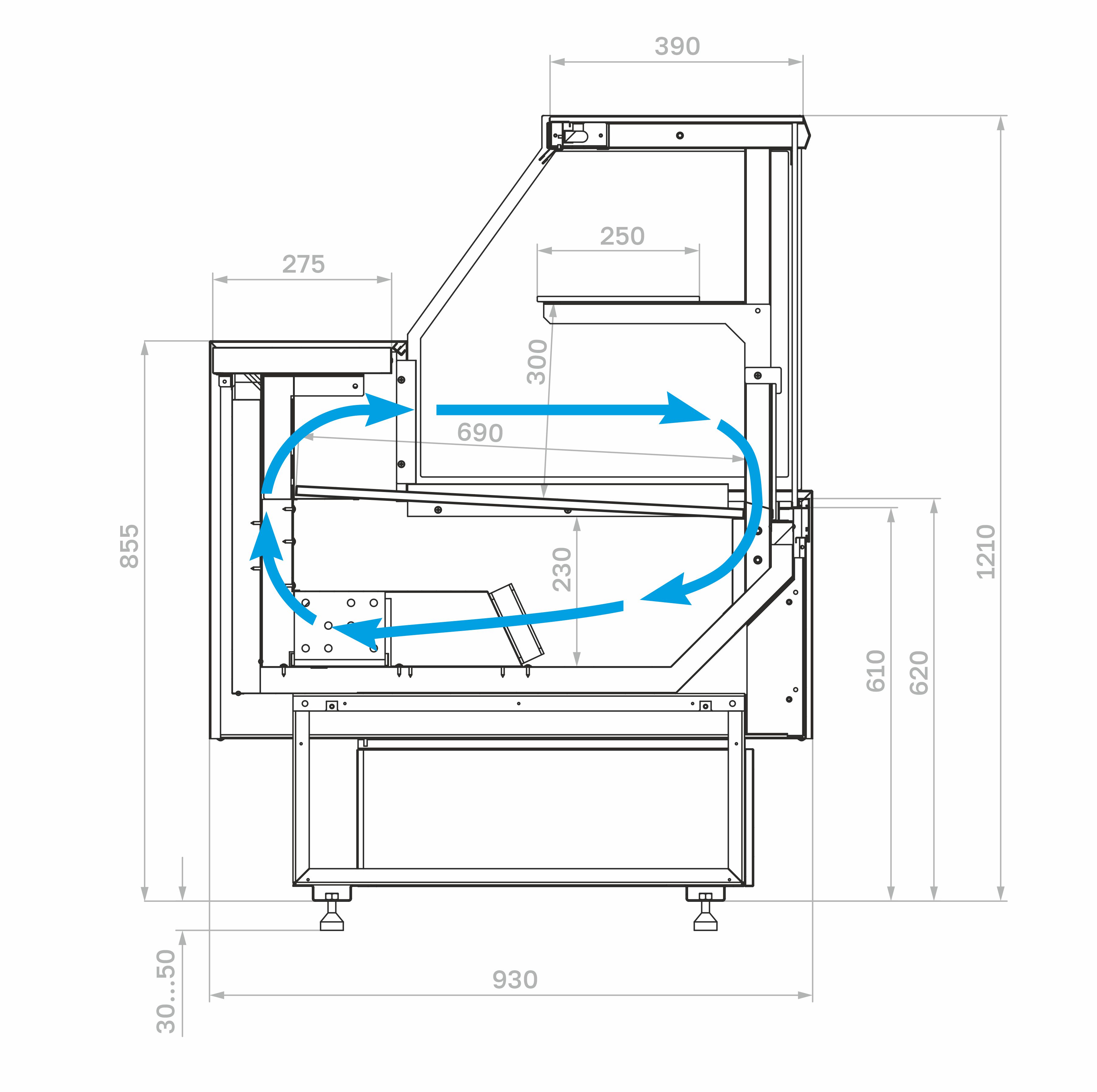Модель без боковин предназначена для установки нескольких витрин в линию и не может использоваться как отдельностоящая. При заказе нескольких моделей для установки в линию достаточно приобрести две боковины для первой и последней витрины.