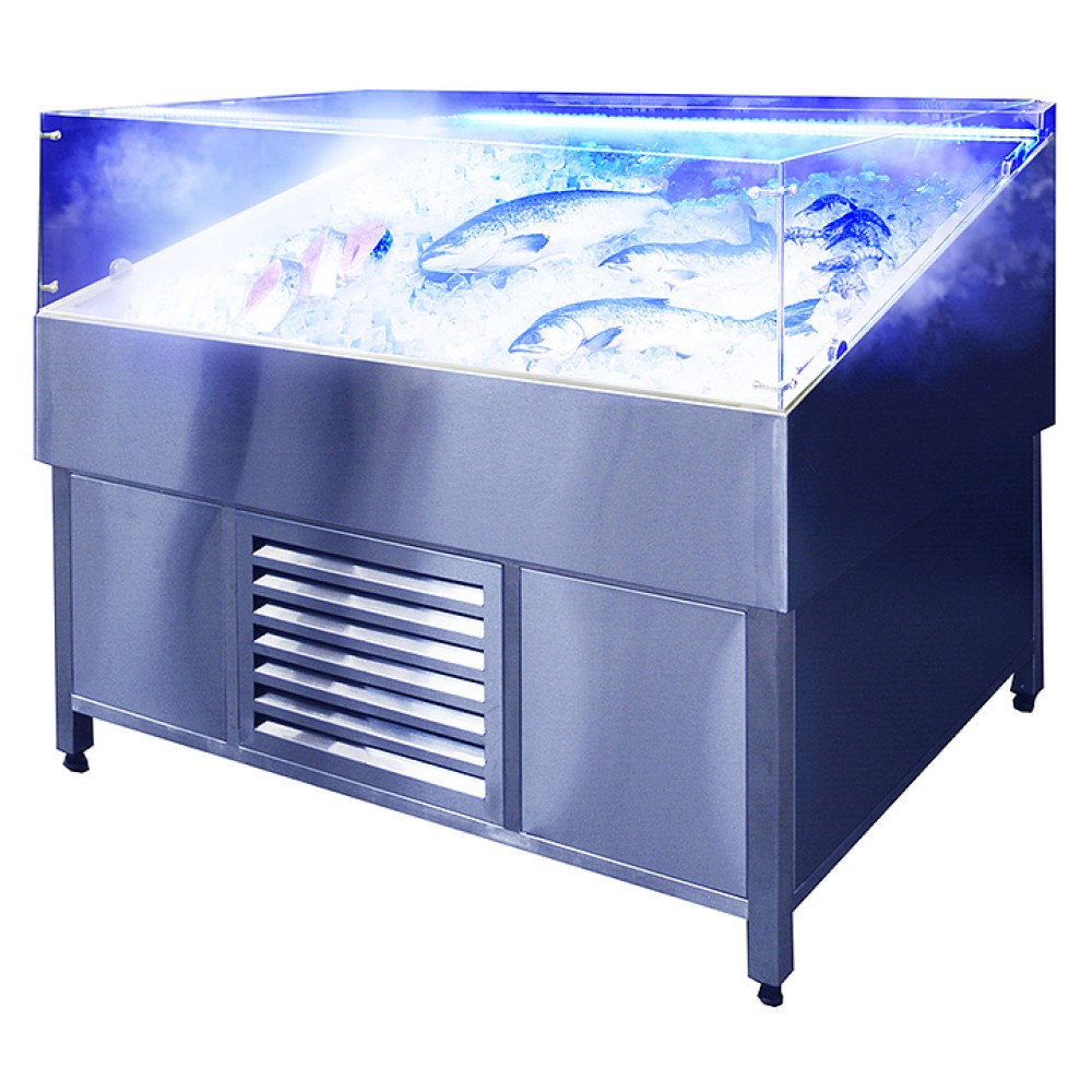 Витрина Finist VFgt/1500 используется на предприятиях общественного питания и торговли для охлаждения и эффектной предпродажной демонстрации рыбы и морепродуктов на льду. Система увлажнения воздуха создает туман, который выполняет функции увлажнения продуктов и привлечения внимания покупателей. Двойные стенки позволяют дольше сохранять температуру в емкости и замедляют процесс таяния льда, вмонтированный кран для слива воды позволяет подсоединить ванну напрямую к системе водоотведения. Цельнозаливной корпус выполнен из нержавеющей стали.