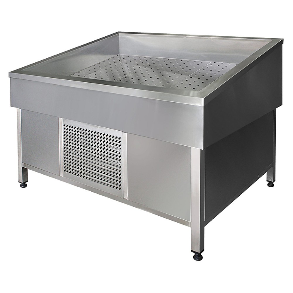 Холодильная витрина Finist VJ/1000 предназначена для демонстрации, охлаждения и кратковременного хранения бутилированных напитков и разнообразных фруктов на предприятиях общественного питания и торговли. Небольшой наклон позволяет лучше разглядеть наполнение. Двойные стенки поддерживают определенную температуру в емкости и замедляют процесс таяния льда, вмонтированный кран для слива воды позволяет подсоединить ванну напрямую к системе водоотведения. Корпус выполнен из нержавеющей стали.