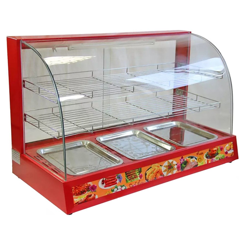 Тепловая витрина Airhot HW-3 предназначена для демонстрации, подогрева и кратковременного хранения пиццы, булочек, пирогов и различных закусок на предприятиях общественного питания и торговли. Модель оснащена терморегулятором и 2 полками-решетками. Корпус выполнен из окрашенной стали.