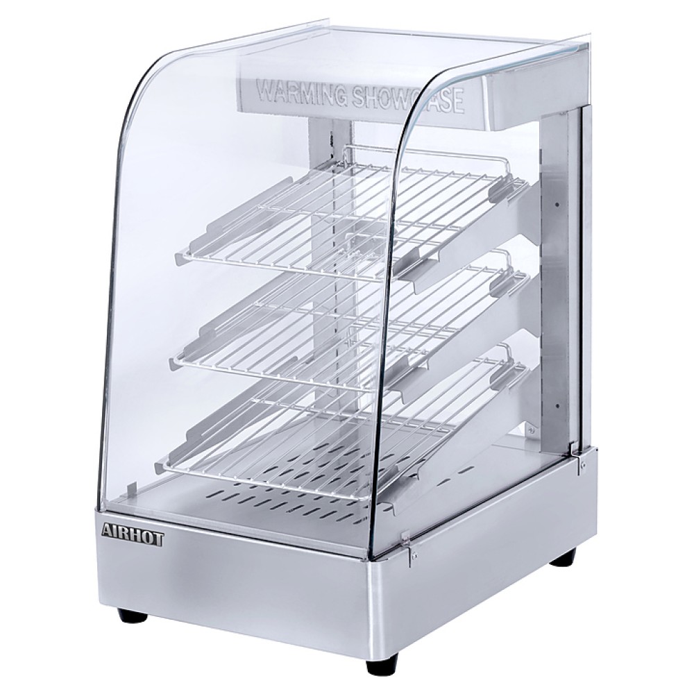 Тепловая витрина Airhot HW-355 предназначена для демонстрации, подогрева и кратковременного хранения пиццы, булочек, пирогов и различных закусок на предприятиях общественного питания и торговли. Модель оснащена 3 полками, терморегулятором, температурным дисплеем, LED-подсветкой и доступом с задней стороны. Корпус выполнен из нержавеющей стали.