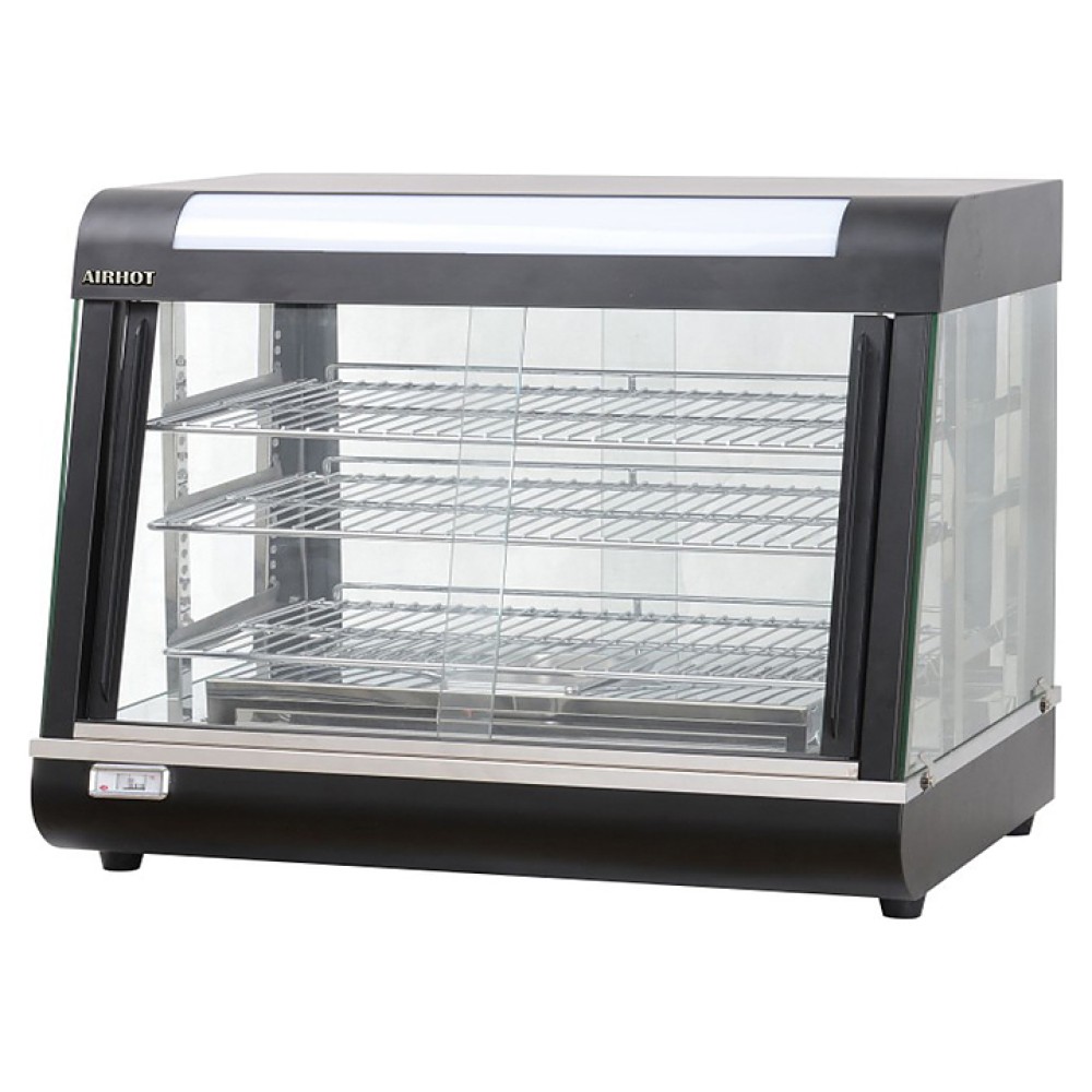 Тепловая витрина Airhot HW-60-2 предназначена для демонстрации, подогрева и кратковременного хранения пиццы, булочек, пирогов и различных закусок на предприятиях общественного питания и торговли. Модель оснащена 3 полками, функцией увлажнения, терморегулятором, температурным дисплеем, LED-подсветкой и доступом с задней стороны. Корпус выполнен из нержавеющей стали.