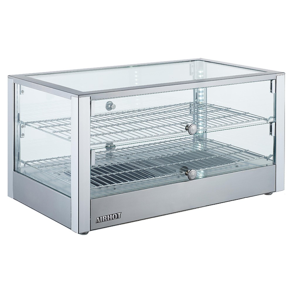 Тепловая витрина Airhot HW-80 предназначена для демонстрации, подогрева и кратковременного хранения пиццы, булочек, пирогов и различных закусок на предприятиях общественного питания и торговли. Модель оснащена функцией пароувлажнения, 2 хромированными полками и 4 шторками с 2-х сторон. Корпус выполнен из нержавеющей стали.