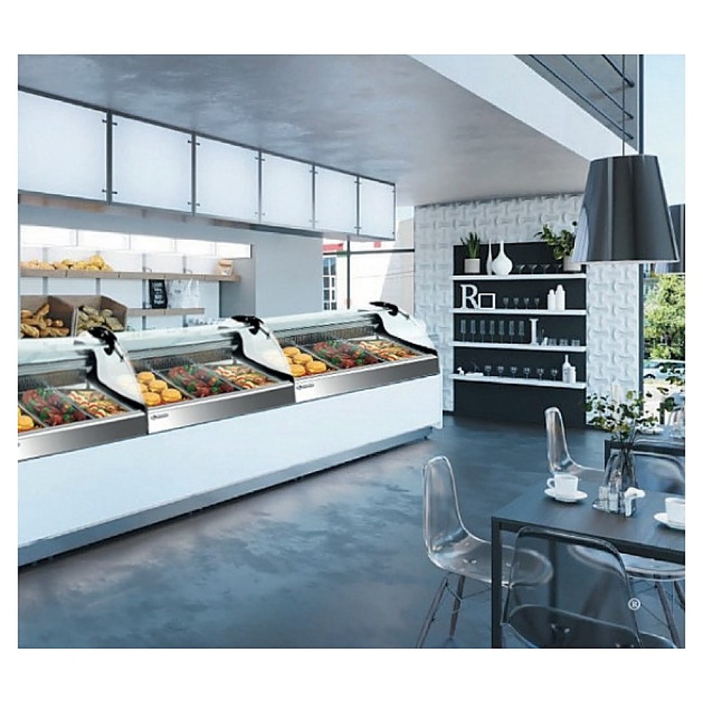 Настольная тепловая витрина CRYSPI VIVO 1000 ВПТ используется на предприятиях общественного питания и торговли для эффектной демонстрации и кратковременного предпродажного хранения гастрономических изделий в подогретом виде. Модель оснащена сферическим фронтальным стеклом с горизонтальной подъемной рукояткой. Рабочая и экспозиционная поверхности выполнены из высококачественной шлифованной нержавеющей стали AISI430, остекление купола – из закаленного стекла высокой степени прозрачности, боковые стекла с шелкографией черного цвета (RAL 9005), термоизоляция – из пенополиуретана.
