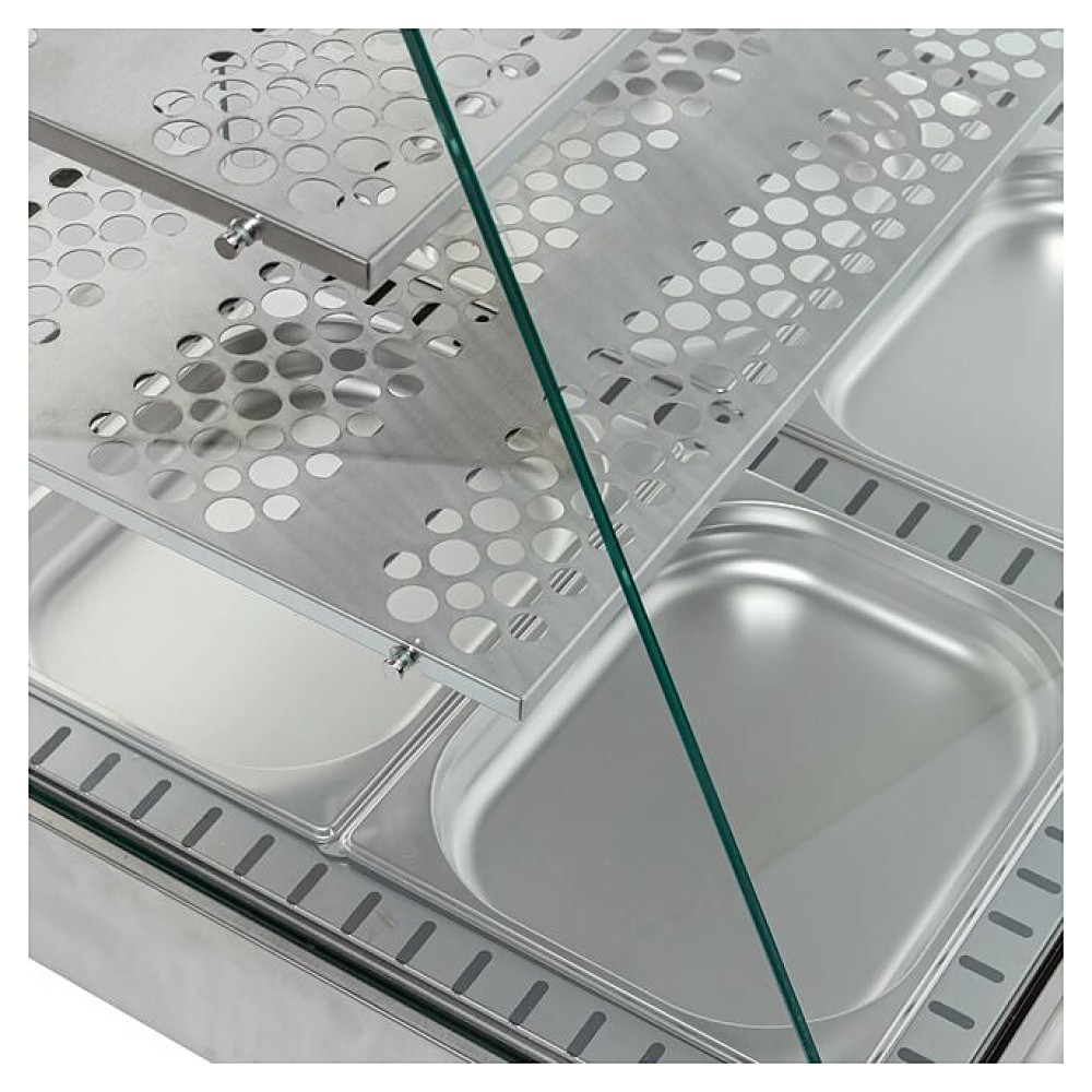 Тепловая витрина Кобор CR2-80H серии Standart предназначена для демонстрации, подогрева и поддержания в теплом состоянии различных блюд на предприятиях общественного питания и торговли. Модель оснащена перфорированными полками 754х350 и 754х280 мм и подсветкой.