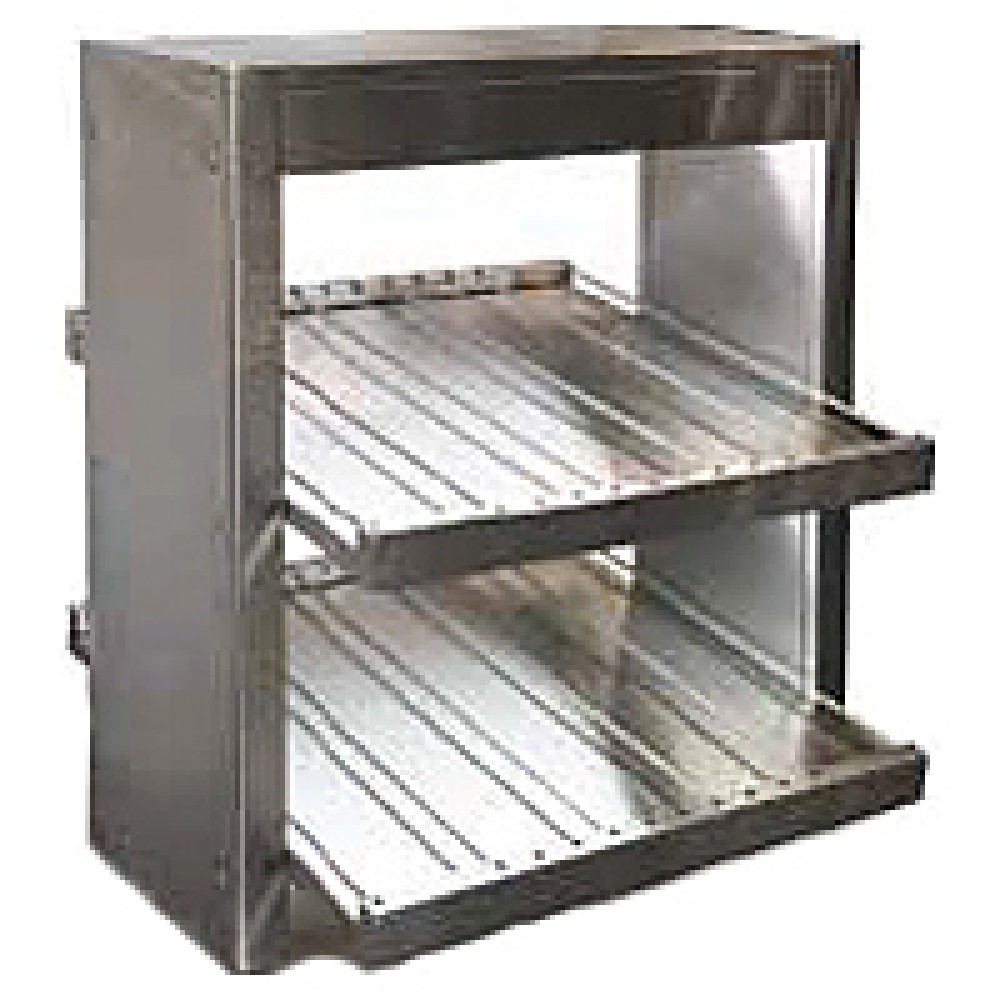 Витрина тепловая ТТМ ПП2-065/5.5 используется для хранения и демонстрации упакованных продуктов. Оборудование оснащено 2 наклонными полками, на каждой из которой установлены терморегулятор и подсветка. Полки выполнены из нержавеющей стали.