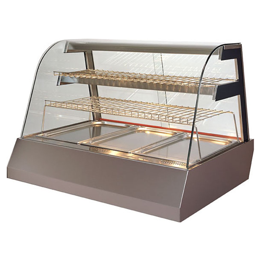 Тепловая витрина UNIS Kentucky Hot High 3GN1/1 предназначена для демонстрации и подогрева пиццы, круассанов, булочек, выпечки с горячей начинкой, пирогов и различных закусок на предприятиях общественного питания и торговли. Модель оснащена выставочной панелью, 2 съемными полками-решетками и люминесцентными лампами. Корпус выполнен из нержавеющей стали.