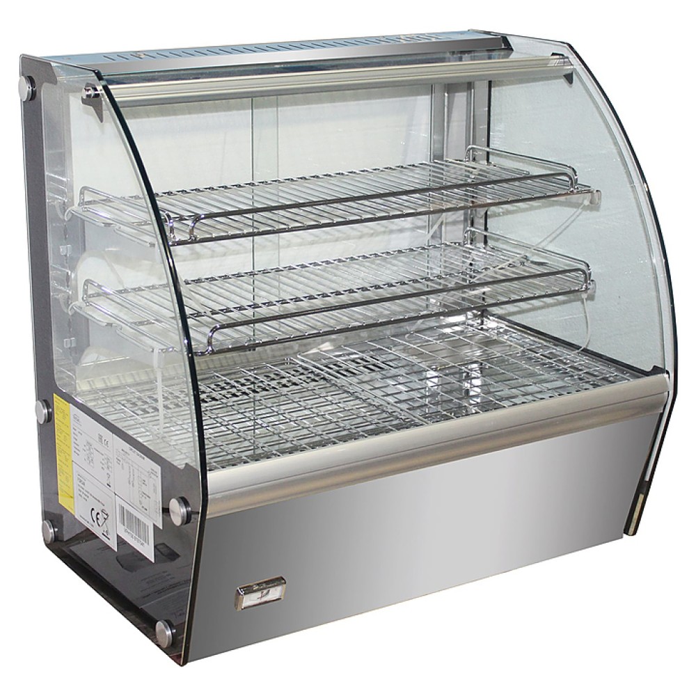 Тепловая витрина VIATTO HTH120 предназначена для демонстрации и кратковременного хранения при температуре подачи пиццы, булочек, пирогов и других закусок и готовых блюд на предприятиях общественного питания и торговли. Модель оснащена 2 хромированными полками-решетками и 1 полкой в основании. Фронтальная часть выполнена из гнутого стекла.