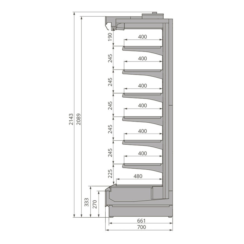 Холодильная горка Brandford Tesey Ultra Slim 2080 250 предназначена для демонстрации, охлаждения и кратковременного хранения гастрономических товаров на предприятиях общественного питания и торговли. Модель оснащена 5 рядами полок с ценникодержателями и верхней светодиодной подсветкой внутреннего объема. Ультратонкие профили расширяют площадь выкладки и позволяют загрузить больше охлаждаемых продуктов.