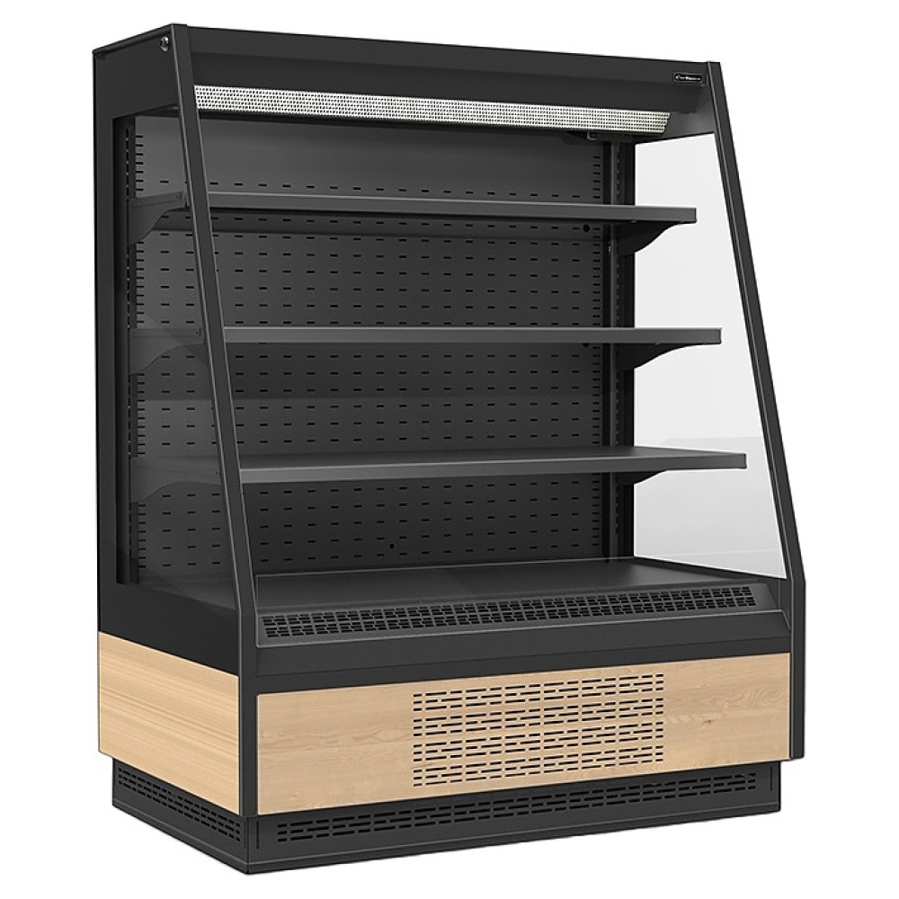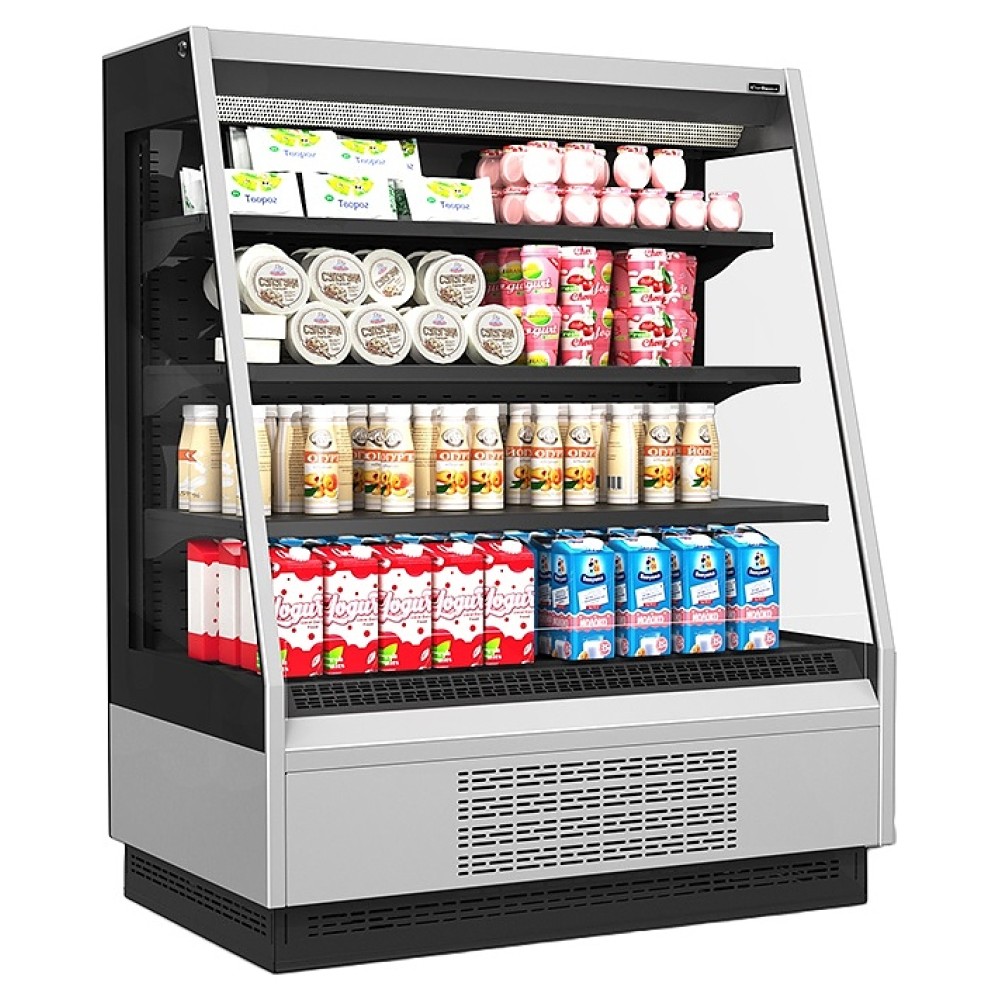 Холодильная горка Carboma F 16-08 VM 1,0-2 версия 2.0 серии Tokyo 2 используется на предприятиях общественного питания и торговли для охлаждения, кратковременного хранения и предпродажной демонстрации напитков, мяса, птицы, полуфабрикатов, молочных и гастрономических изделий. Модель оснащена 3 рядами навесных полок с кронштейнами, подставкой с фронтальной термовыводящей и цокольной решетками. Корпус с наклонным фронтом выполнен из стали с антикоррозийным покрытием внешних панелей, полок и кронштейнов серого цвета (RAL 9006), цоколя и интерьера черного цвета (RAL 9005), теплоизоляция – из пенополиуретана.