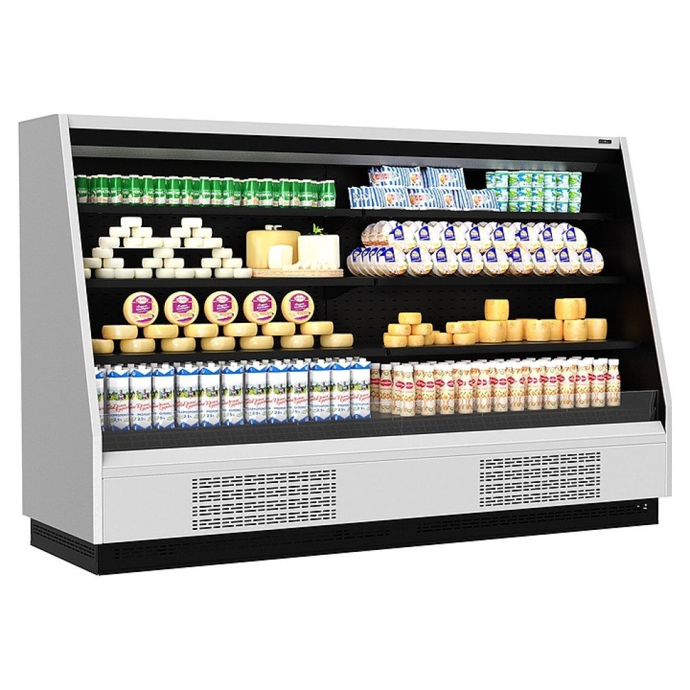 Холодильная горка Carboma F 16-08 VM 2,5-2 версия 2.0 серии Tokyo 2 используется на предприятиях общественного питания и торговли для охлаждения, кратковременного хранения и предпродажной демонстрации напитков, мяса, птицы, полуфабрикатов, молочных и гастрономических изделий. Модель оснащена 3 рядами навесных полок с кронштейнами, глухими боковинами с зеркалами на внутренней поверхности, подставкой с фронтальной термовыводящей и цокольной решетками. Корпус с наклонным фронтом выполнен из стали с антикоррозийным покрытием внешних панелей, полок и кронштейнов серого цвета (RAL 9006), цоколя и интерьера черного цвета (RAL 9005), теплоизоляция – из пенополиуретана.