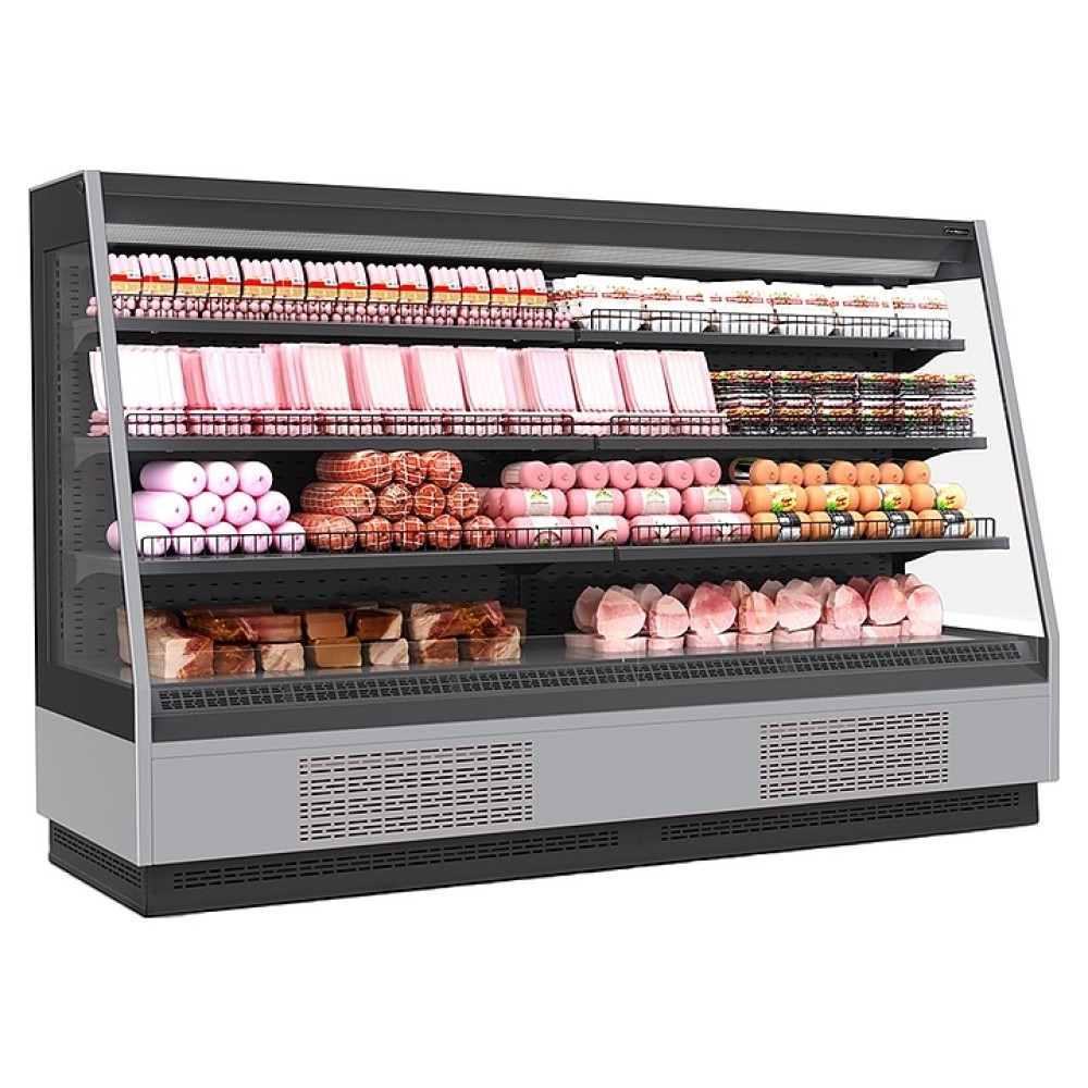 Холодильная горка Carboma F 16-08 VM 2,5-2 версия 2.0 серии Tokyo 2 используется на предприятиях общественного питания и торговли для охлаждения, кратковременного хранения и предпродажной демонстрации напитков, мяса, птицы, полуфабрикатов, молочных и гастрономических изделий. Модель оснащена 3 рядами навесных полок с кронштейнами, подставкой с фронтальной термовыводящей и цокольной решетками. Корпус с наклонным фронтом выполнен из стали с антикоррозийным покрытием внешних панелей, полок и кронштейнов серого цвета (RAL 9006), цоколя и интерьера черного цвета (RAL 9005), теплоизоляция – из пенополиуретана.