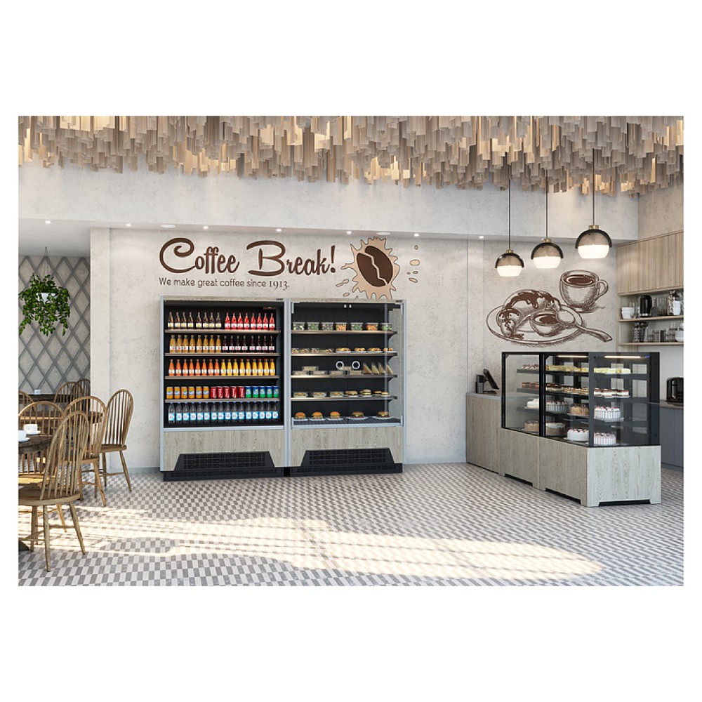 Холодильная горка Carboma FC 20-07 VM 1,0-2 версия 2.0 серии Cube 2 используется на предприятиях общественного питания и торговли для охлаждения, кратковременного хранения и предпродажной демонстрации напитков, мяса, птицы, полуфабрикатов, молочных и гастрономических изделий. Модель оснащена 4 рядами навесных полок с кронштейнами, глухими боковинами, подставкой с фронтальной термовыводящей и цокольной решетками. Корпус прямоугольно ориентированной формы выполнен из стали с антикоррозийным покрытием внешних панелей, полок и кронштейнов серого цвета (RAL 9006), цоколя и интерьера черного цвета (RAL 9005), теплоизоляция – из пенополиуретана.