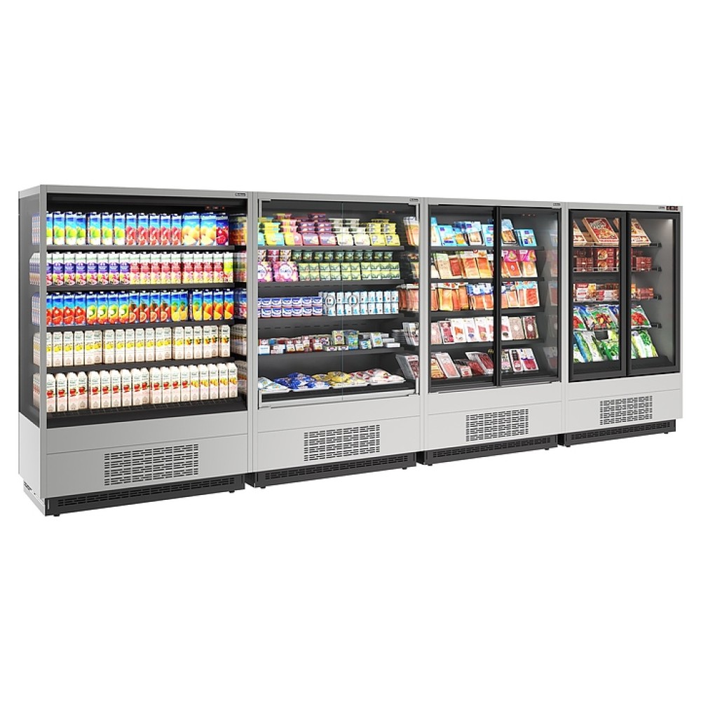 Холодильная горка Carboma FC 20-07 VM 1,9-2 версия 2.0 серии Cube 2 используется на предприятиях общественного питания и торговли для охлаждения, кратковременного хранения и предпродажной демонстрации напитков, мяса, птицы, полуфабрикатов, молочных и гастрономических изделий. Модель оснащена 4 рядами навесных полок с кронштейнами, глухими боковинами, подставкой с фронтальной термовыводящей и цокольной решетками. Корпус прямоугольно ориентированной формы выполнен из стали с антикоррозийным покрытием внешних панелей, полок и кронштейнов серого цвета (RAL 9006), цоколя и интерьера черного цвета (RAL 9005), теплоизоляция – из пенополиуретана.
