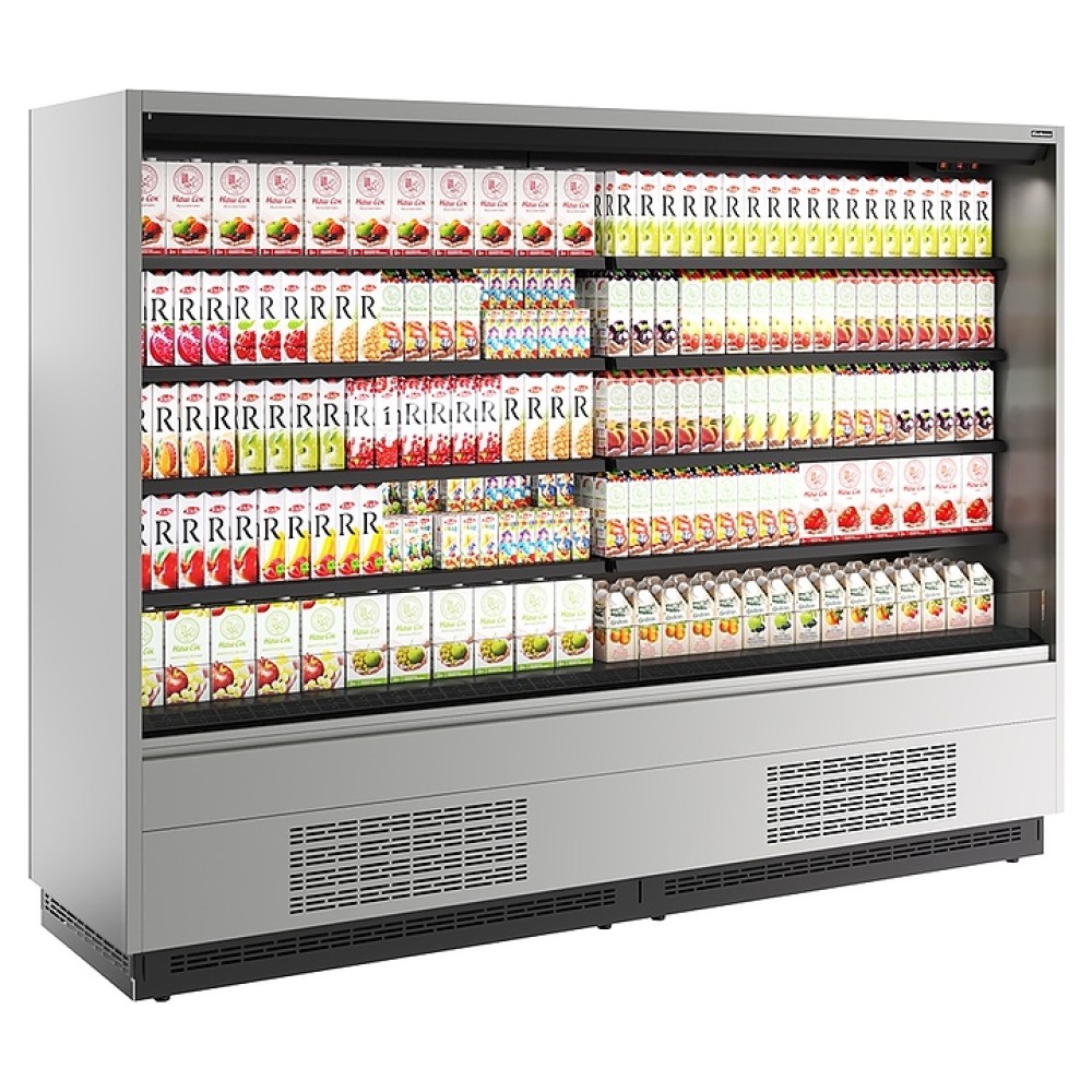 Холодильная горка Carboma FC 20-07 VM 2,5-2 версия 2.0 серии Cube 2 используется на предприятиях общественного питания и торговли для охлаждения, кратковременного хранения и предпродажной демонстрации напитков, мяса, птицы, полуфабрикатов, молочных и гастрономических изделий. Модель оснащена 4 рядами навесных полок с кронштейнами, глухими боковинами, подставкой с фронтальной термовыводящей и цокольной решетками. Корпус прямоугольно ориентированной формы выполнен из стали с антикоррозийным покрытием внешних панелей, полок и кронштейнов серого цвета (RAL 9006), цоколя и интерьера черного цвета (RAL 9005), теплоизоляция – из пенополиуретана.
