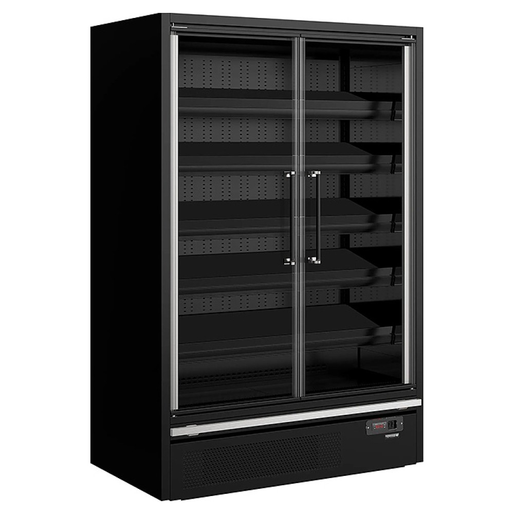 Холодильная горка TEFCOLD GALAXY+ GP14FGD BLACK используется для демонстрации, охлаждения и краткосрочного хранения продуктов питания, напитков, закусок и десертов на предприятиях общественного питания и торговли. Модель оснащена 2 распашными самозакрывающимися дверьми, 5 регулируемыми полками с функцией наклона, внутренней вертикальной светодиодной подсветкой, термометром и 4 регулируемыми ножками. Двери выполнены из стекла, бампера - из нержавеющей стали.