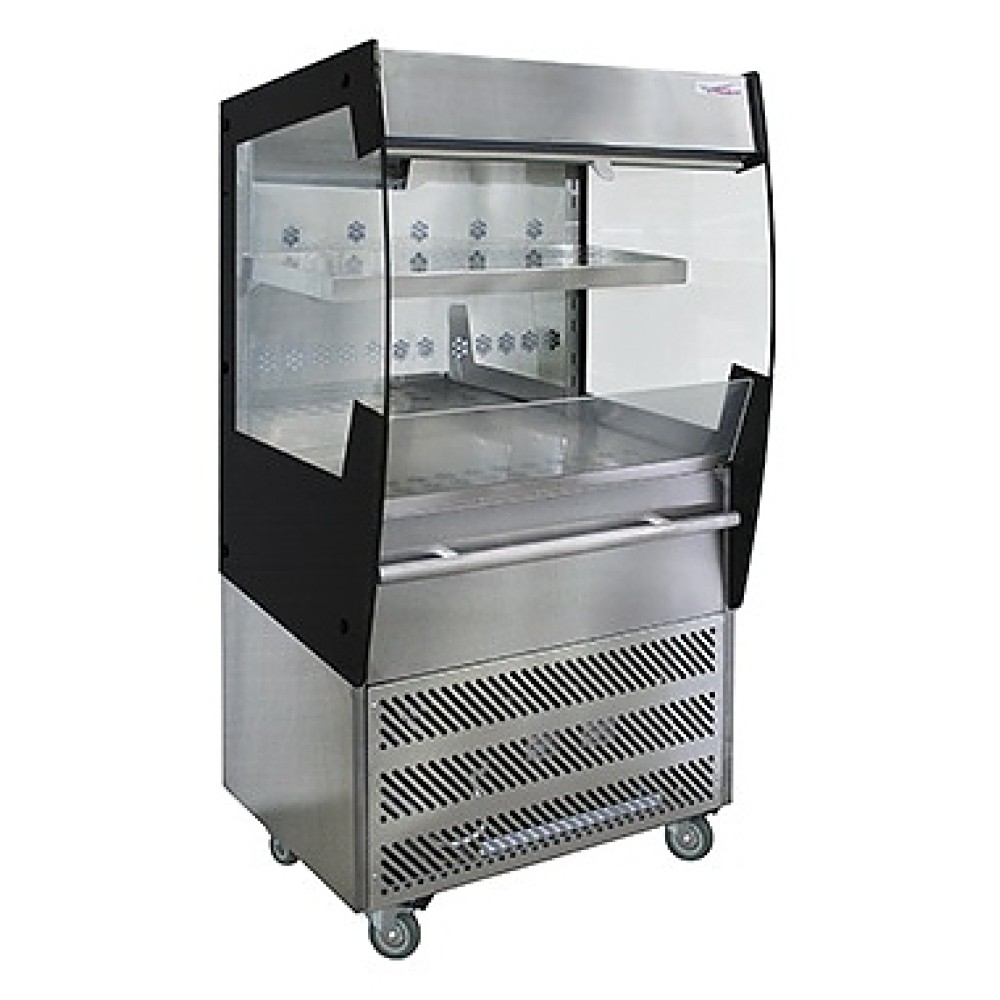 Напольная холодильная витрина-горка Finist FRESH F6/7/115 предназначена для демонстрации, кратковременного хранения и охлаждения продуктов и напитков на предприятиях общественного питания и торговли. Модель оснащена электронным управлением с дисплеем и 1 полкой с подсветкой. Ночная шторка обеспечивает сохранение холода в витрине в ночное время и снижает энергопотребление. Корпус выполнен из крашеной стали, полки и поддон - из нержавеющей зеркальной стали, боковые панели - из стекла с черными рамками.