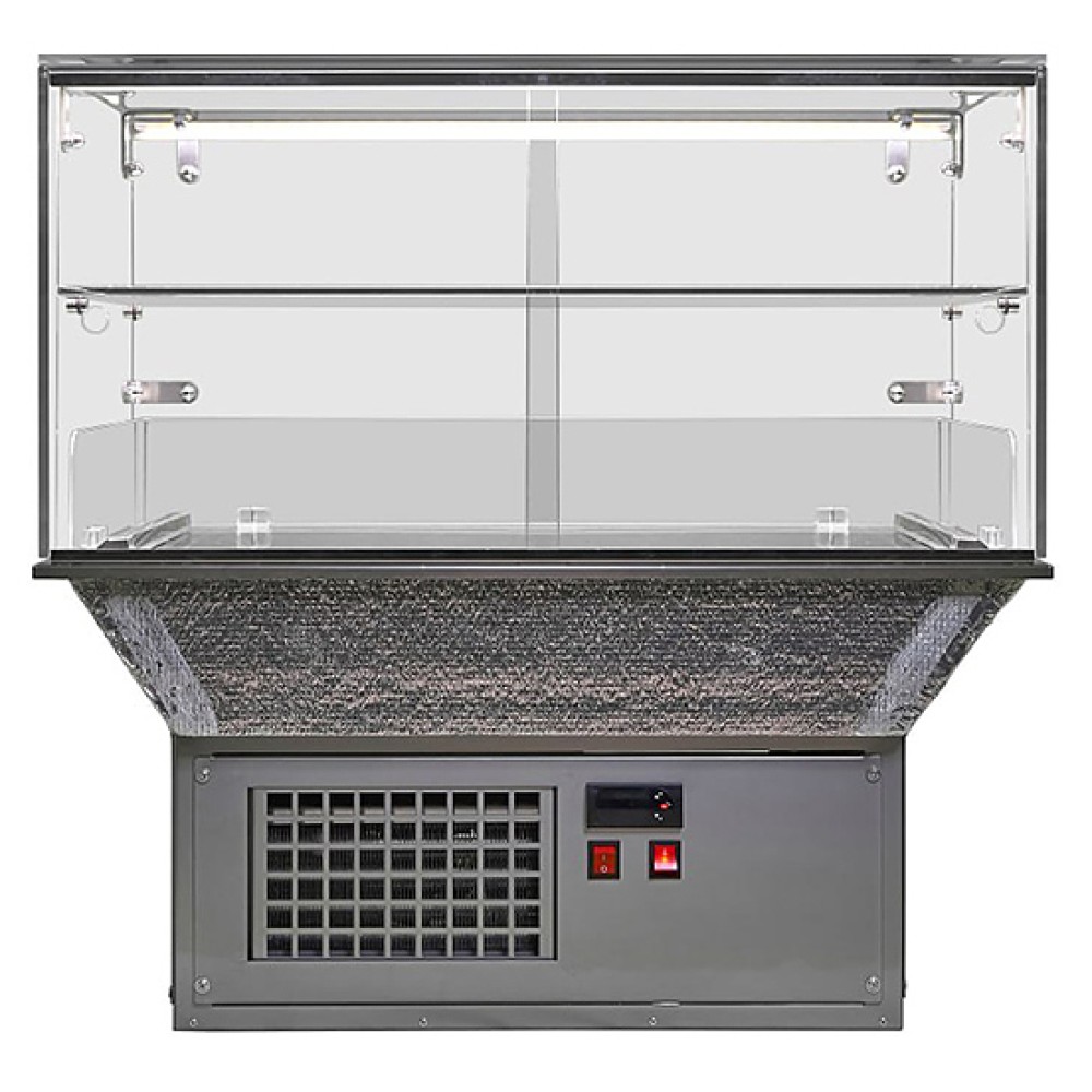 Встраиваемая холодильная витрина ТехноБалт Тикси DROP-IN 1100х450х400 используется на предприятиях общественного питания и торговли для охлаждения, демонстрации и кратковременного хранения продуктов, напитков и готовых блюд. Модель оснащена 2 дверьми-купе со сторона продавца, полкой и светодиодными светильниками. Безрамочный купол и полка выполнены из закаленного стекла, двери-купе - из акрилового стекла, дно витрины в демонстрационной зоне - из нержавеющей стали AISI 304.